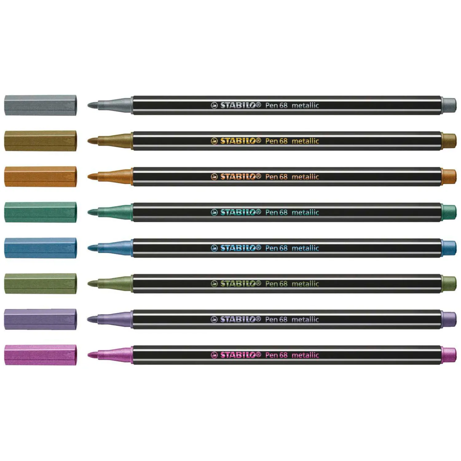 Viltstift van zeer hoge kwaliteit in 8 prachtige metallic kleuren. Schrijft direct, schudden of pompen is niet nodig.