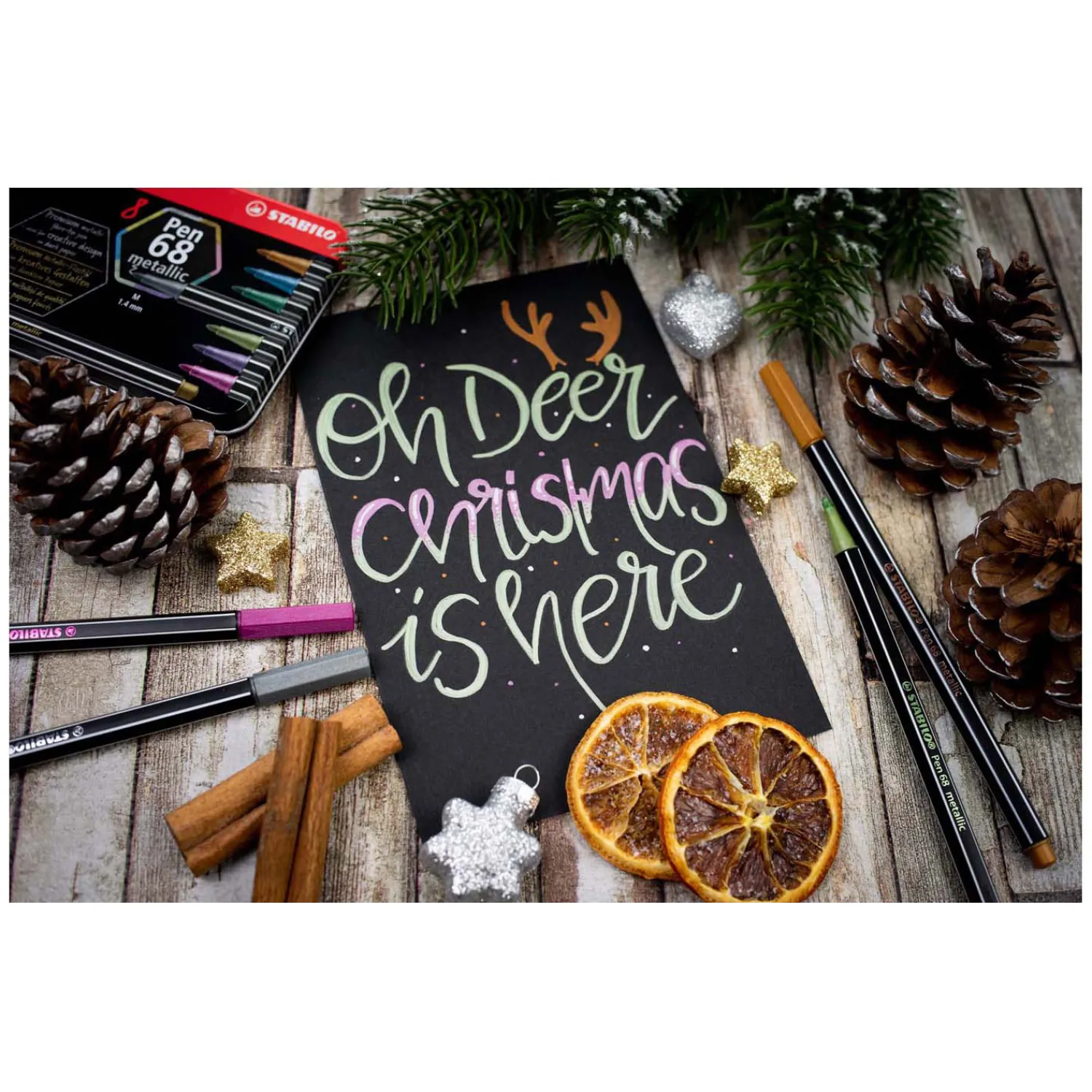 • Schrijft op gladde oppervlakken als folie, wenskaarten, cadeaupapier, glas etc.