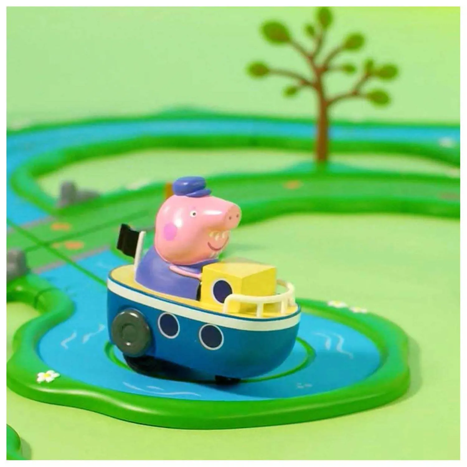 Stap in de wereld van Peppa Big met deze interactieve Dobberende Boottocht Speelset. Bouw zelf een leuke en kleurrijke rijbaan met de bijgeleverde rechte stukken, bochten en accessoires, zodat Opa Big eindeloos rondjes kan varen in zijn dobberboot. Combineer de stukken tot één grote baan – en het speelplezier kan beginnen! In deze set vind je Opa’s Dobberboot, die vrolijk wiebelt terwijl het voortbeweegt. Het voertuig is batterij-aangedreven en is eenvoudig te bedienen. Eenmaal geactiveerd rijdt hij zelfstandig over de baan, voor eindeloos speelplezier. Maak de stad compleet met de meegeleverde accessoires zoals het Winderige kasteel, twee bomen voor sfeer en natuurlijk het interactieve Boothuis! Want het wordt nóg leuker: wanneer een voertuig voorbij het Boothuis gaat, hoor je automatisch geluidseffecten zoals het vrolijke Peppa Big themalied en andere grappige geluidjes die het spel helemaal tot leven brengen.