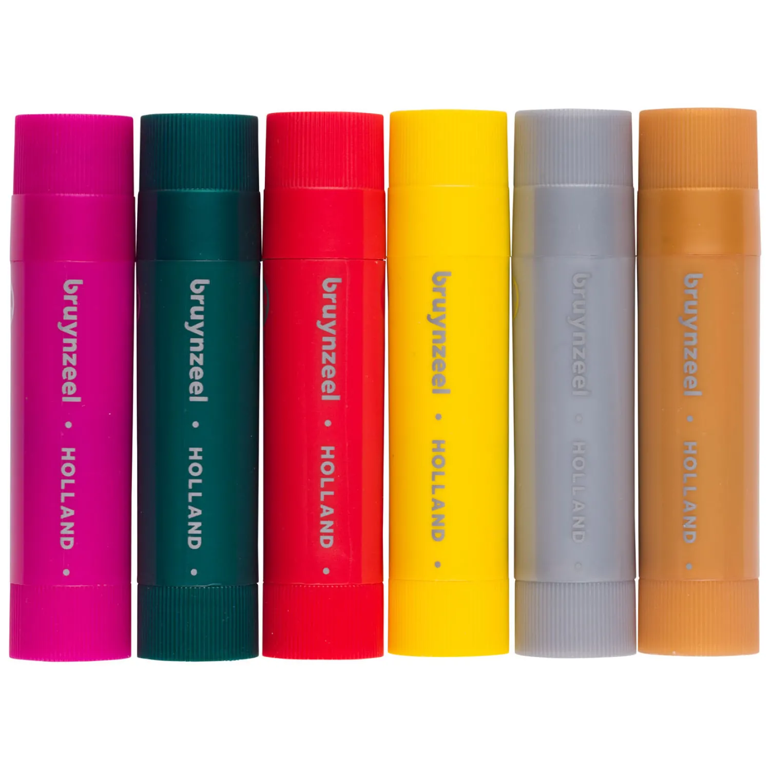 Deze stiften met plakkaatverf zijn speciaal ontwikkeld voor jonge kunstenaars en stimuleren de fijne motoriek. Verfresten zijn makkelijk van de handen te wassen met water en zeep. Bescherm kleding en meubels tegen vlekken. Mochten er vlekken ontstaan op stoffen, was ze dan direct met water en zeep. Geschikt voor gebruik op papier, karton, hout en glas. Inhoud: 6 x 10 gram.