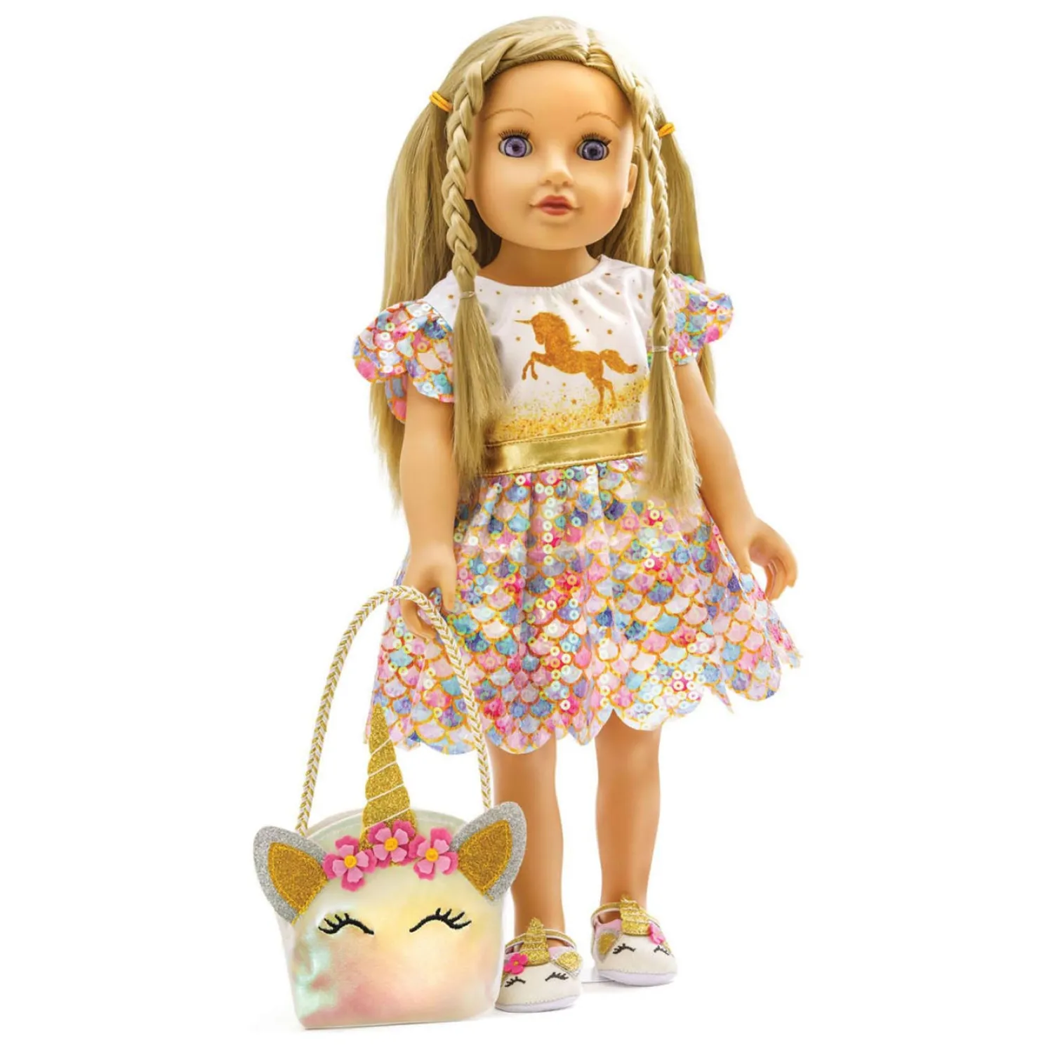 De eenhoorn poppentas is te matchen met andere Heless-accessoires uit de Unicorn-serie, maar is voor elke pop een onmisbare aanvulling op de outfit. De tas is makkelijk te openen en sluiten dankzij de sluiting van klittenband.