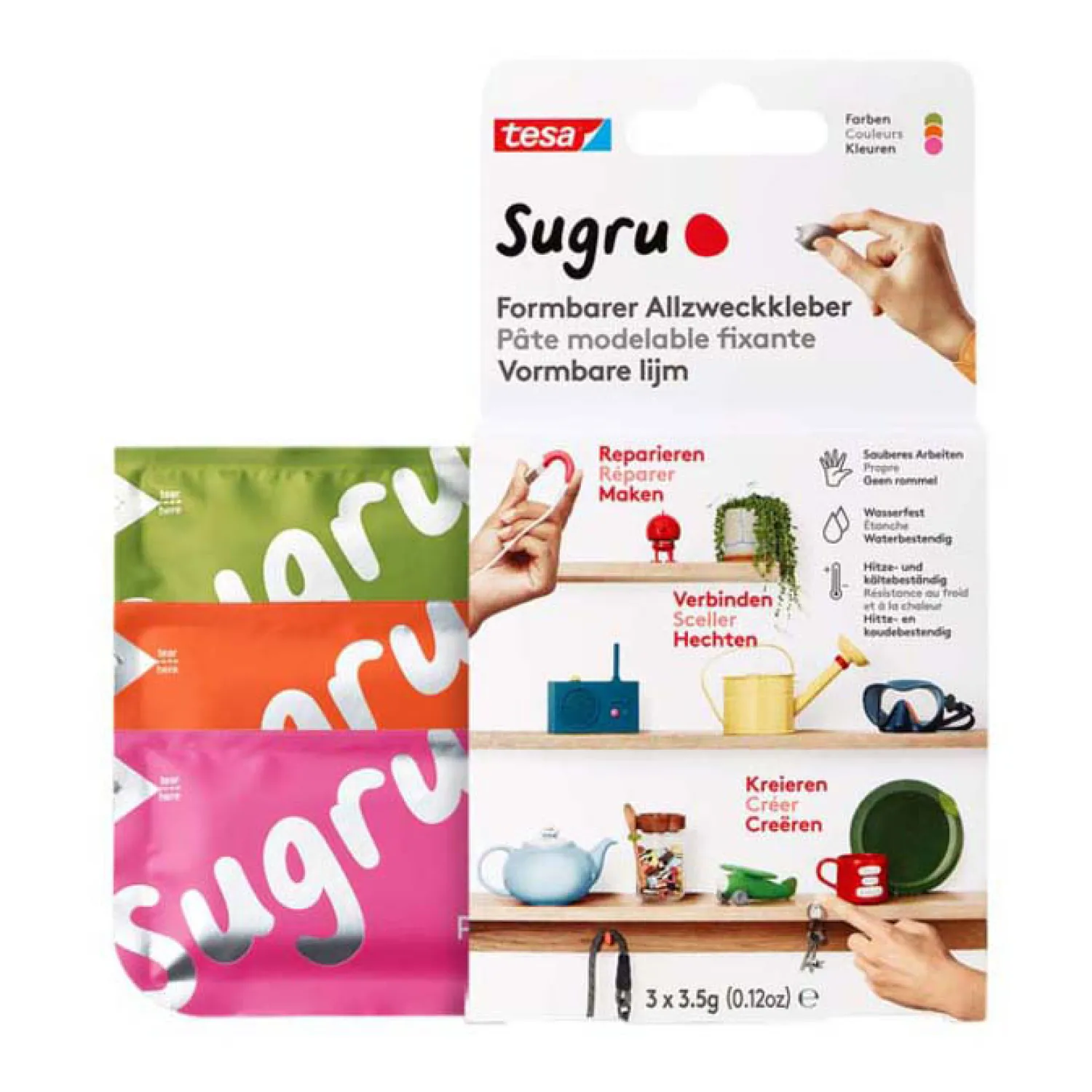 •Sugru hecht niet aan olieachtige kunststoffen zoals polypropyleen, polyethyleen of Teflon™.