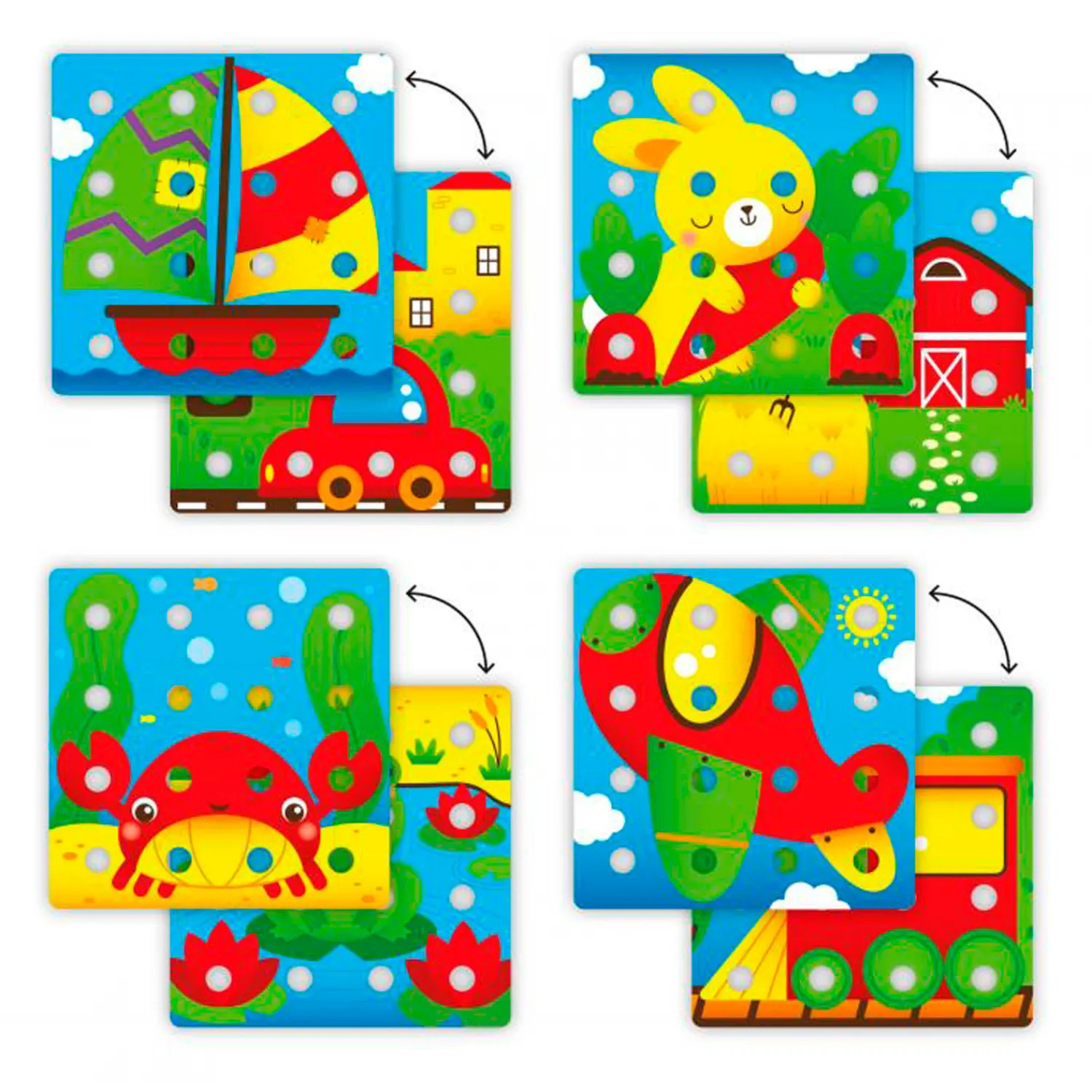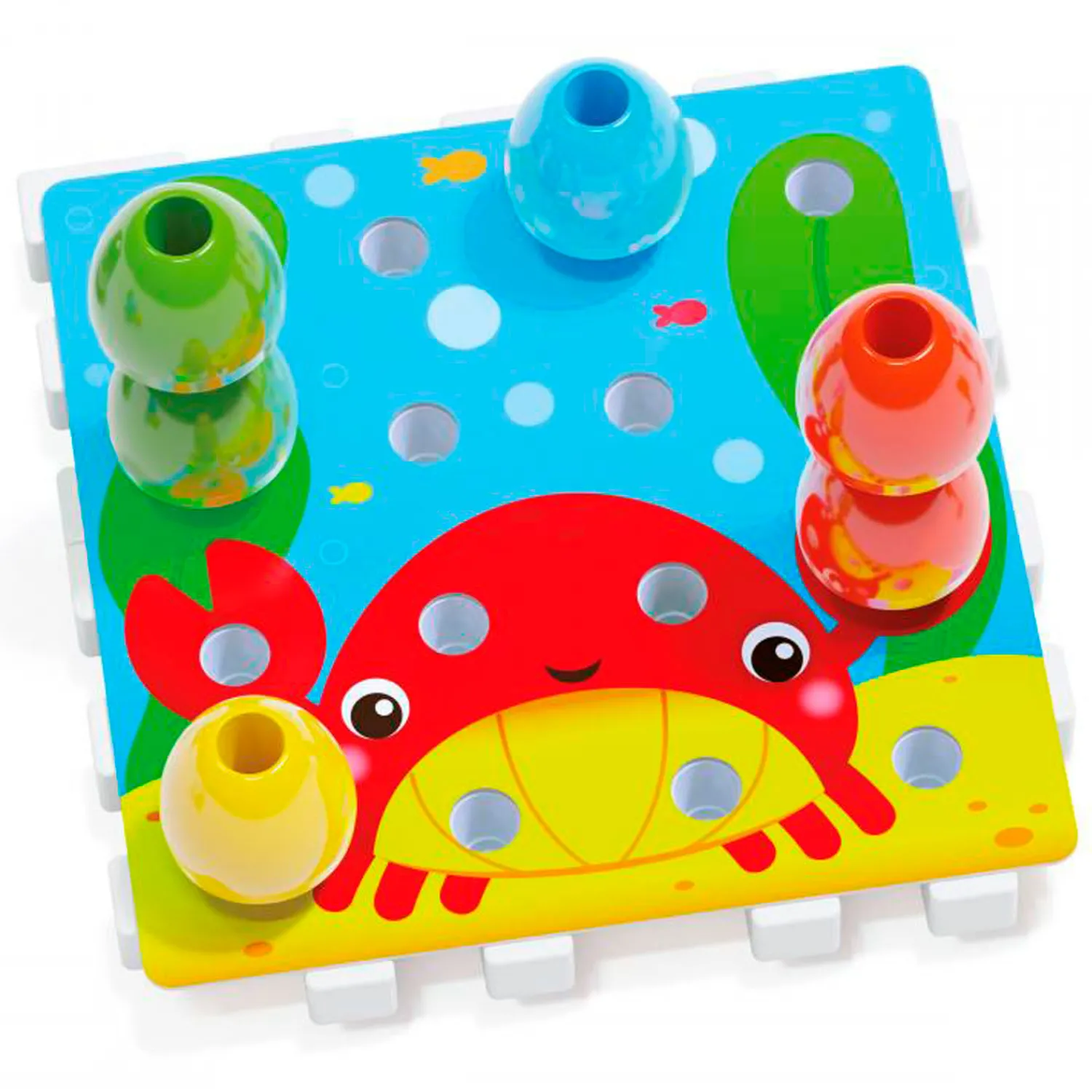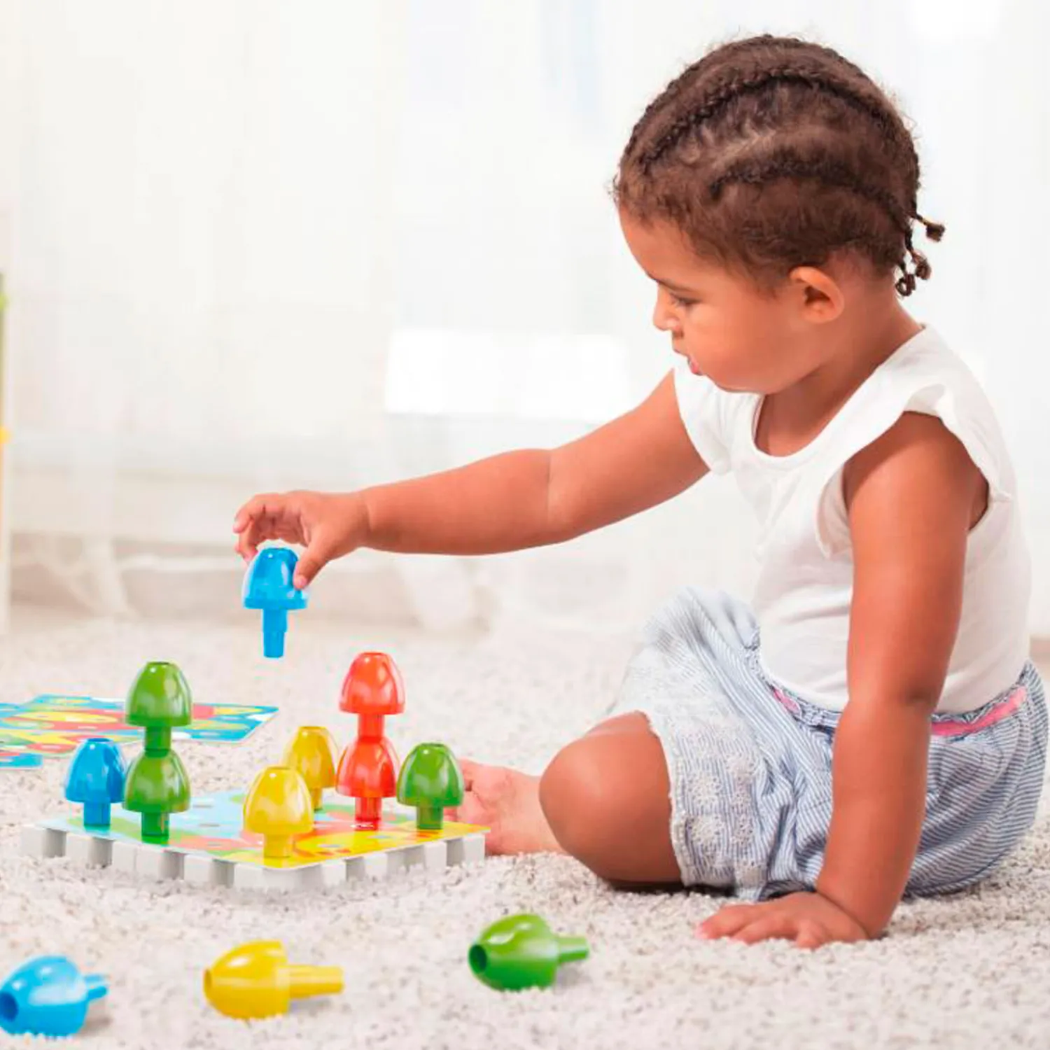 Dit spel is 2 spellen ineen, waarbij je je fijne motoriek en hand-oogcoördinatie ontwikkelt! Pak een plaat met een van de leuke, herkenbare afbeeldingen en plaats de spelstenen in de juiste kleur op de juiste plekken. De andere manier om met dit spel te spelen, is om de bouwplaten te gebruiken en daar de spelstenen op te bouwen, zoals je zelf wilt!