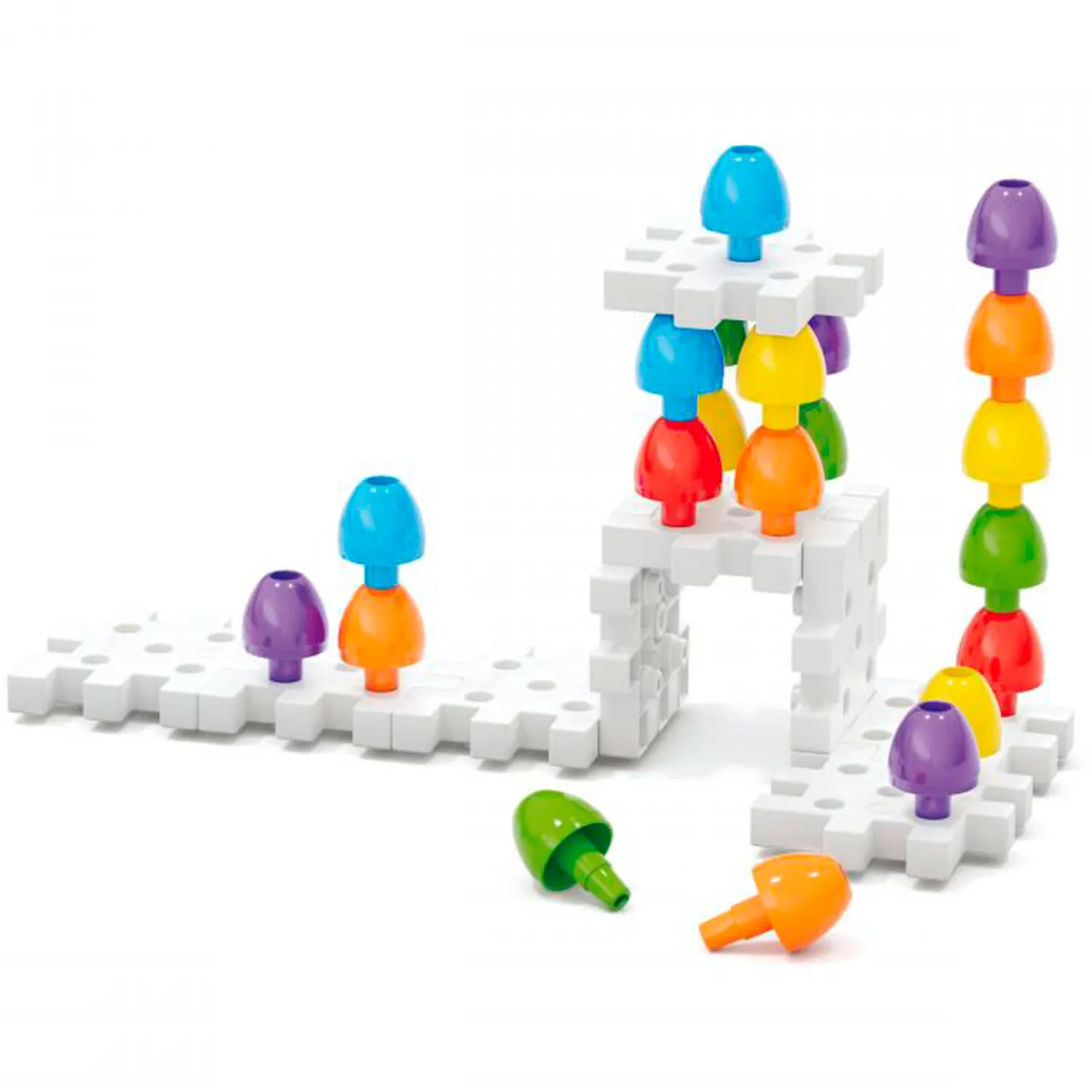 Dit spel is 2 spellen ineen, waarbij je je fijne motoriek en hand-oogcoördinatie ontwikkelt! Pak een plaat met een van de leuke, herkenbare afbeeldingen, zoals de dinosaurus, en plaats de spelstenen in de juiste kleur op de juiste plekken. De andere manier om met dit spel te spelen, is om de bouwplaten te gebruiken en daar de spelstenen op te bouwen, zoals je zelf wilt! Bouw je eigen creaties met de gekleurde spelstenen!