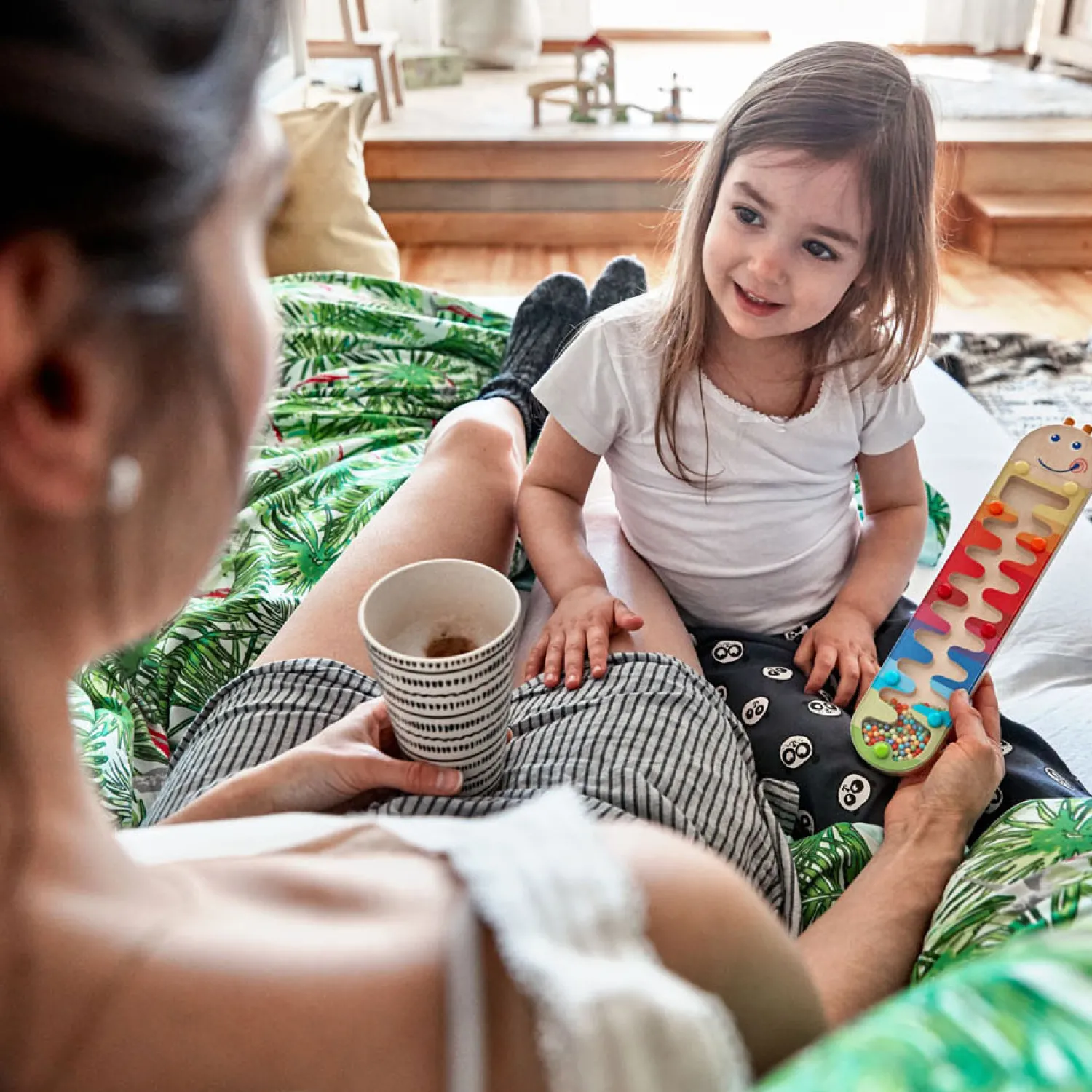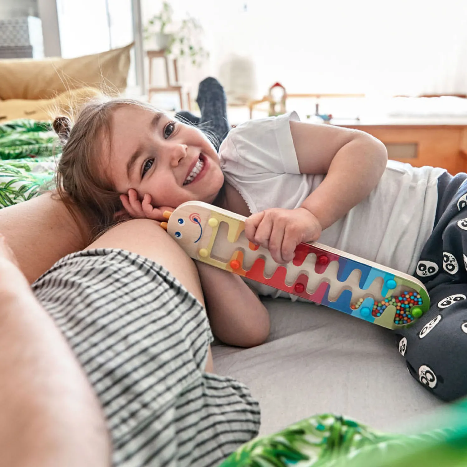 Veel kijk- en luisterplezier met de Haba Regenmaker Worm! Een prachtig gezicht hoe de gekleurde balletjes zich zigzaggend een weg banen. Heerlijk rustgevend is het geluid dat de vallende balletjes daarbij maken! Gaat deze Haba Regenmaker jouw kleintje ook rustig maken of gebruikt hij het speeltje als rammelaar?