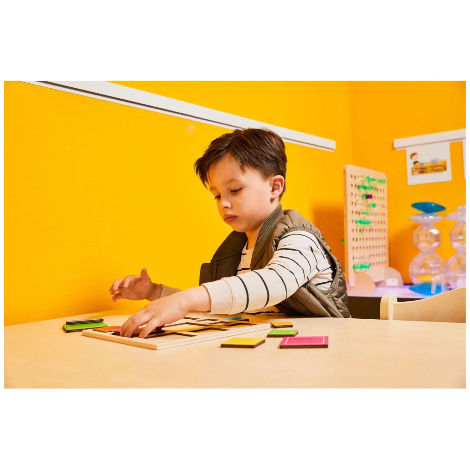 Naast puzzelen op grootte en/of kleur kun je deze puzzel ook gebruiken van tal van andere activiteiten. Bijvoorbeeld het op zoek gaan naar dezelfde kleuren in de ruimte. Of van klein naar groot leggen.
