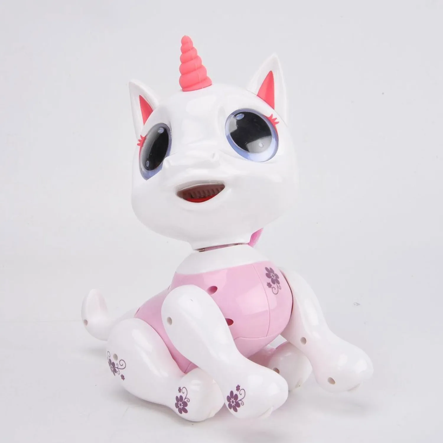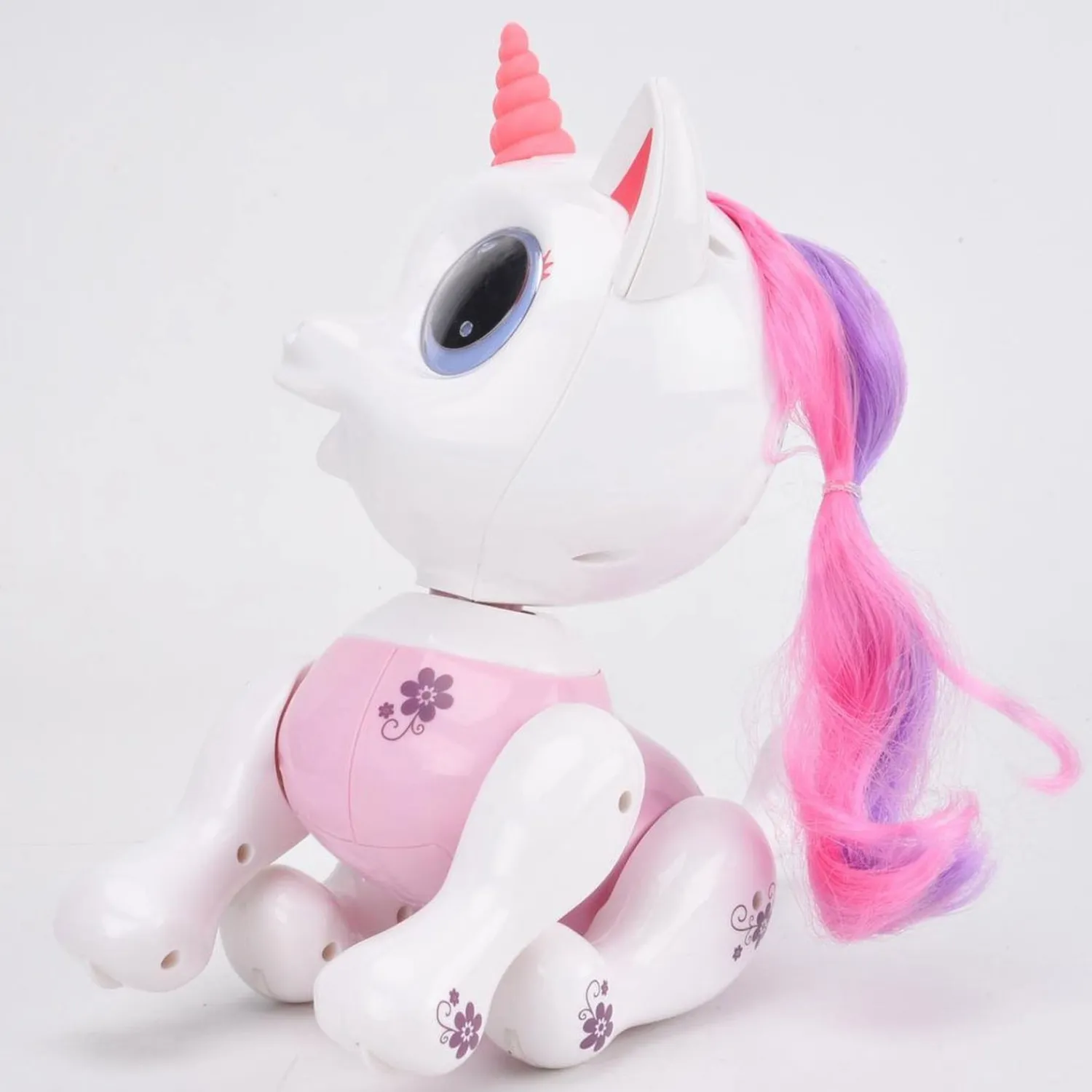 Maak kennis met de Gear2Play Little Unicorn robot! Deze schattige, interactieve eenhoornrobot is voorzien van verschillende sensoren waardoor ze reageert op aanraking. Druk op de eenhoorn, spreek je eigen teksten in en hoor hoe Little Unicorn de teksten herhaalt. Ook maakt ze hinnik- en galopgeluiden, net als een echte eenhoorn! Haar sprankelende eenhoorn licht blauw op als je erop drukt en ze maakt ook een schattig sprankelgeluid. De vrolijke Little Unicorn robot wil altijd met je spelen.