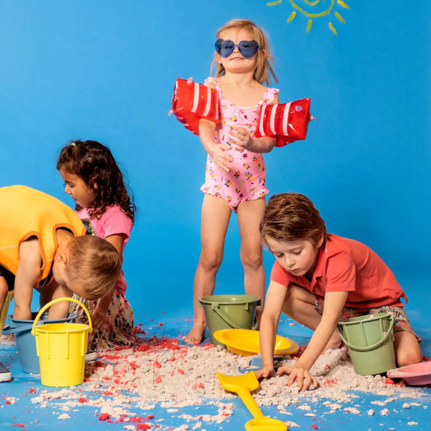 Jonge kinderen houden ervan om met zand te spelen. Vooral in combinatie met water. Ze komen erdoor tot rust en leren er veel van. Deze stevige emmer is 15 cm hoog en heeft een doorsnede van 15 cm.