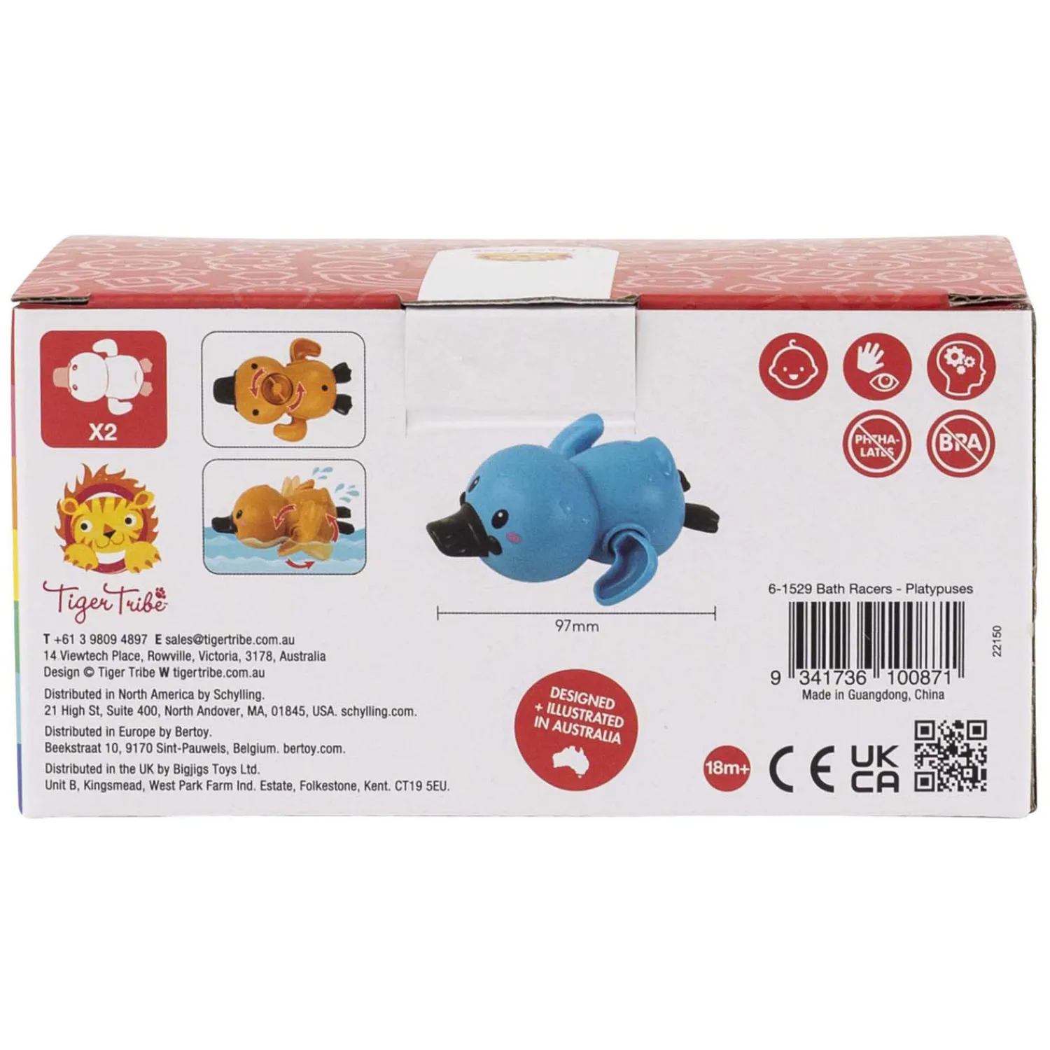 Maak Badtijd Spannend met Tiger Tribe Bath Racers Platypuses!Transformeer badtijd in een leuke en spannende race met de Tiger Tribe Bath Racers Platypuses! Deze schattige en snelle vogelbekdieren zorgen voor eindeloos waterplezier terwijl ze door het bad scheuren.Waarom kiezen voor Tiger Tribe Bath Racers Platypuses?- Schattig Ontwerp: De vrolijke vogelbekdieren zijn ontworpen om de verbeelding van kinderen te prikkelen en ze te vermaken tijdens het badderen.- Spannende Races: De badracers zijn eenvoudig op te winden, zodat ze door het water kunnen racen, wat zorgt voor spannende en interactieve badtijdactiviteiten.- Stimuleert Motorische Vaardigheden: Door de racers op te winden en te volgen, ontwikkelen kinderen hun fijne motoriek en coördinatie op een speelse manier.- Veilig en Duurzaam: Gemaakt van hoogwaardige, kindvriendelijke materialen die bestand zijn tegen water en intensief gebruik, zodat ouders zeker kunnen zijn van de veiligheid en duurzaamheid.- Gemakkelijk Mee te Nemen: De compacte badracers zijn perfect om mee te nemen, zodat kinderen overal van waterpret kunnen genieten, of het nu thuis is, op vakantie of bij het zwembad.Laat je kinderen genieten van een opwindende en leuke badervaring met Tiger Tribe Bath Racers Platypuses! Bestel vandaag nog en maak van badtijd een spannende race met deze schattige vogelbekdieren.
