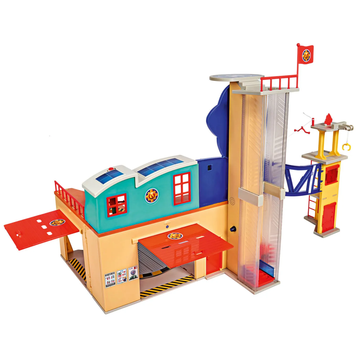De brandweerkazerne heeft ook een reddingstoren, die de dappere brandweerlieden gebruiken om te oefenen met het redden van mensen en ervoor te zorgen dat ze geschikt zijn voor het werk. Ze kunnen via de ladder naar boven klimmen en naar beneden abseilen of de tokkelbaan naar de naastgelegen brandweerkazerne gebruiken. De sterkste brandweermannen gebruiken de klimwand, die in verbinding staat met het station en de toren.