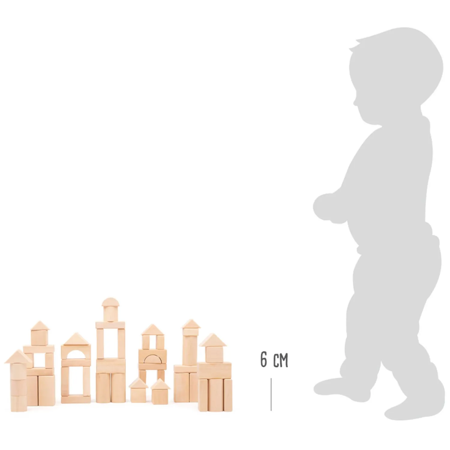 • Een uitgebreide 50-delige set bouwstenen van natuurlijk, onbehandeld hout