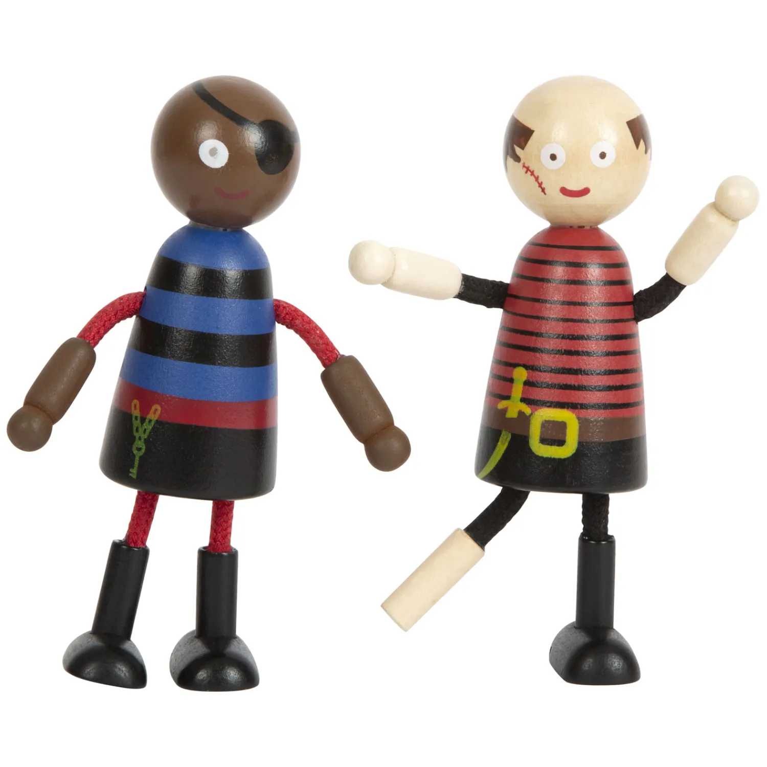Deze houten buigpoppen in piratenlook zorgen voor spannende avonturen in de kinderkamer en op volle zee en zijn de ideale aanvulling op elk speelgoedpiratenschip! Of het nu gaat om een piratenhoed, een ooglapje of een piratencape – alle vijf de buigpoppen zijn rijkelijk gedetailleerd in de typische piratenstijlen. Door hun grootte zijn ze bijzonder gemakkelijk vast te pakken door kinderhanden: een extra bonus is het bioplastic materiaal: de haakhanden van de kapitein en de aap en de haakstaart van de aap zijn gemaakt van plantaardig plastic dat bestaat uit tot 28% tarwestro ( wat een agrarisch bijproduct is). Adviesleeftijd: 3+