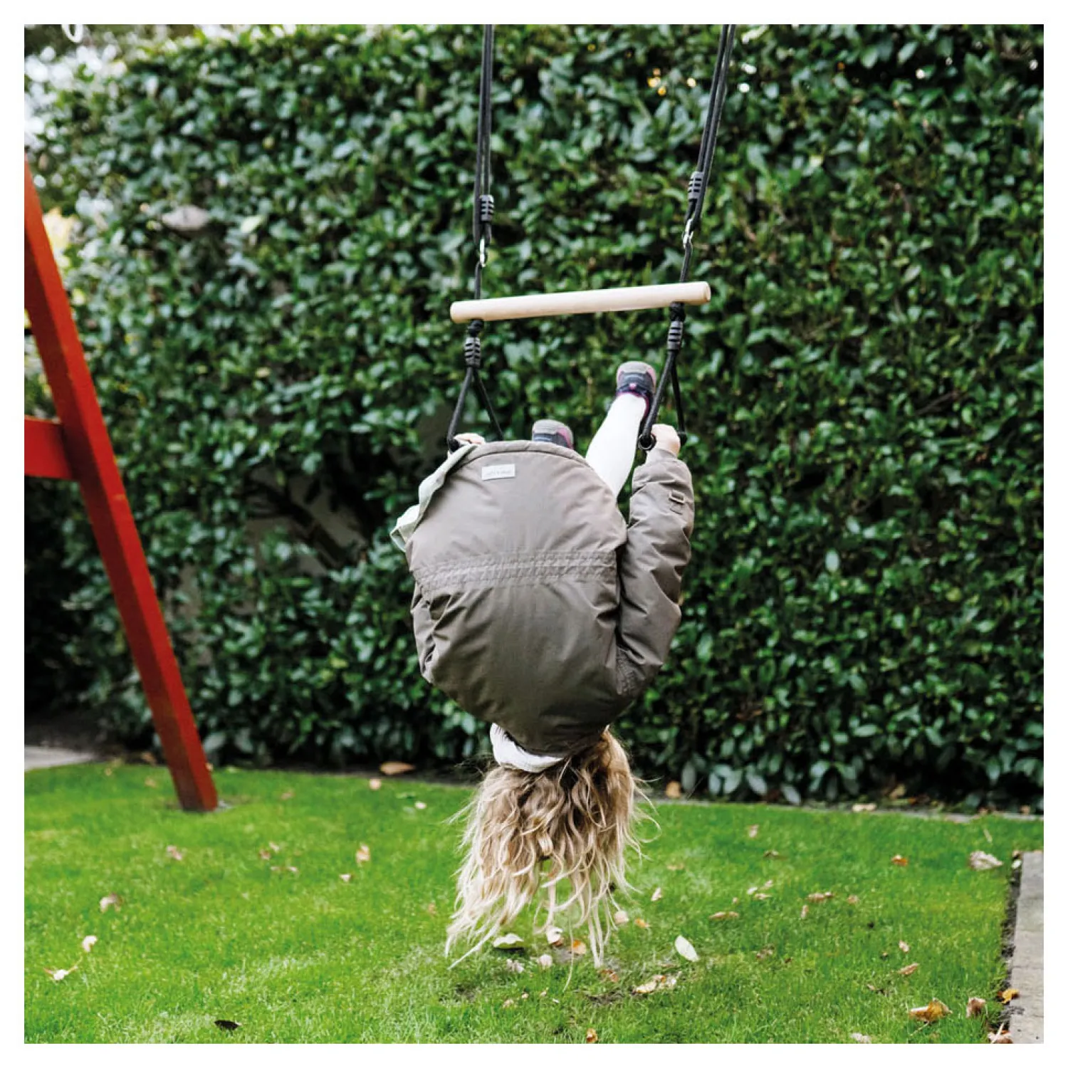 •De houten trapezestang kan gebruikt worden als zitplaats bij het schommelen of gymnastiek
