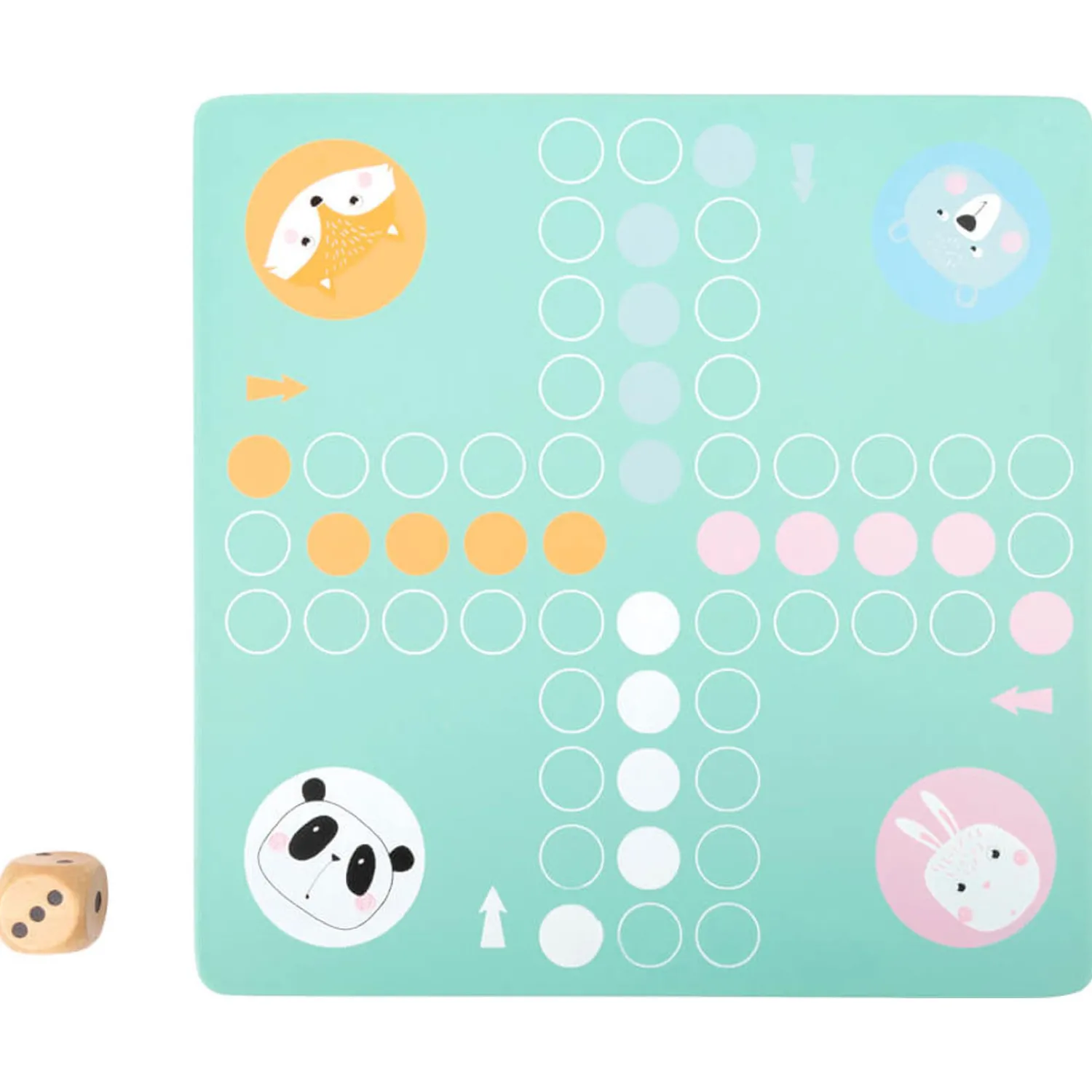 Het doel van het spel is om als eerste al je diertjes in je eigen gekleurde vakjes te krijgen. Gooi om de beurt de dobbelsteen, iedere keer als je 6 gooit mag je een nieuwe pion in het veld zetten. Daarna is je diertje klaar om de stappen te zetten die je gooit met de dobbelsteen.