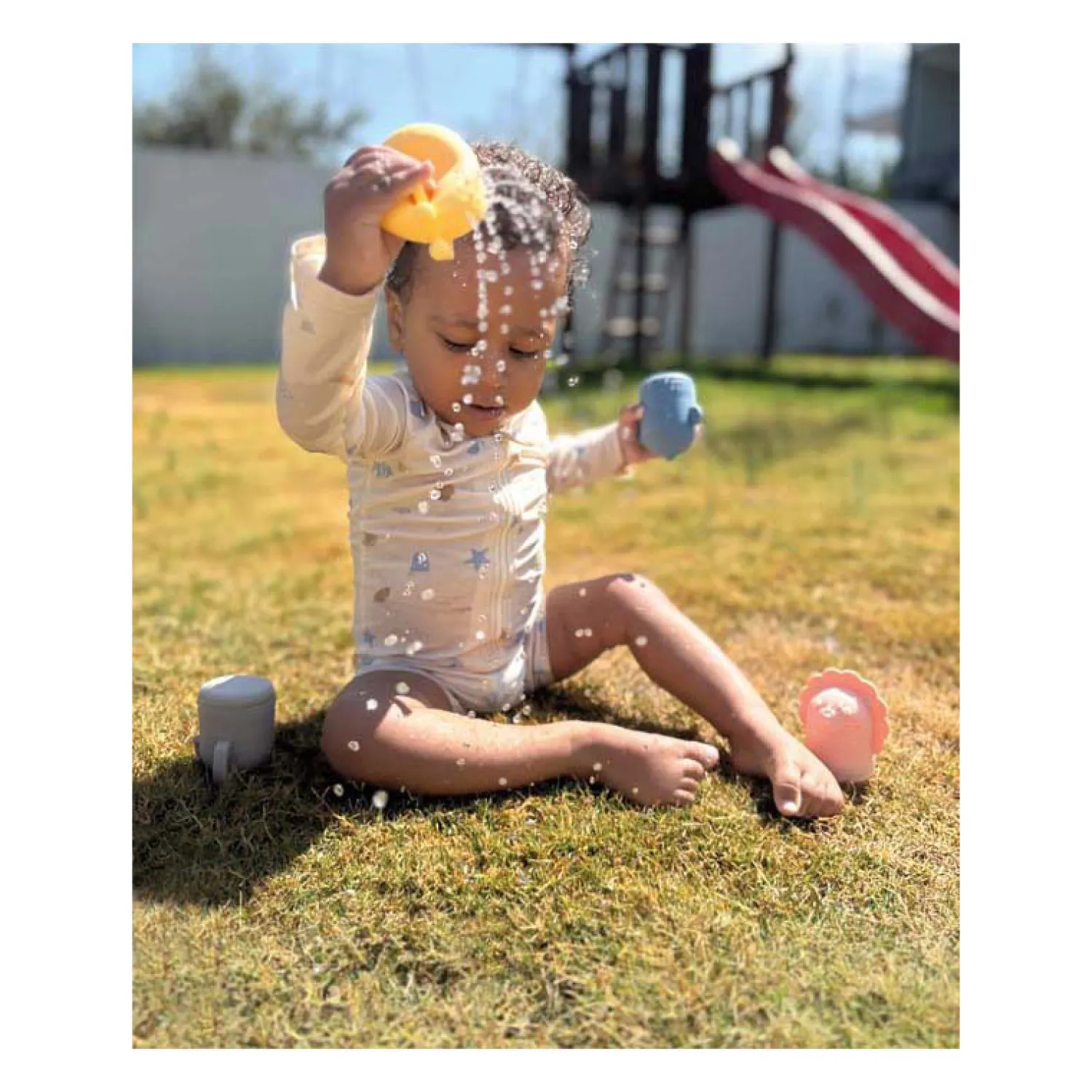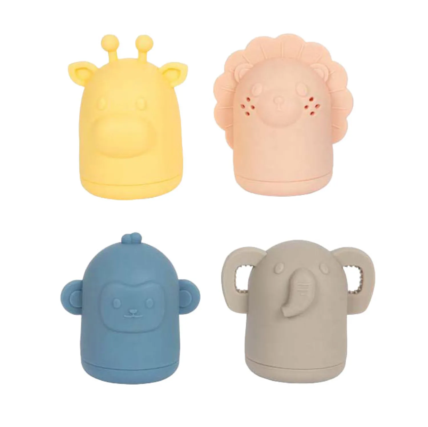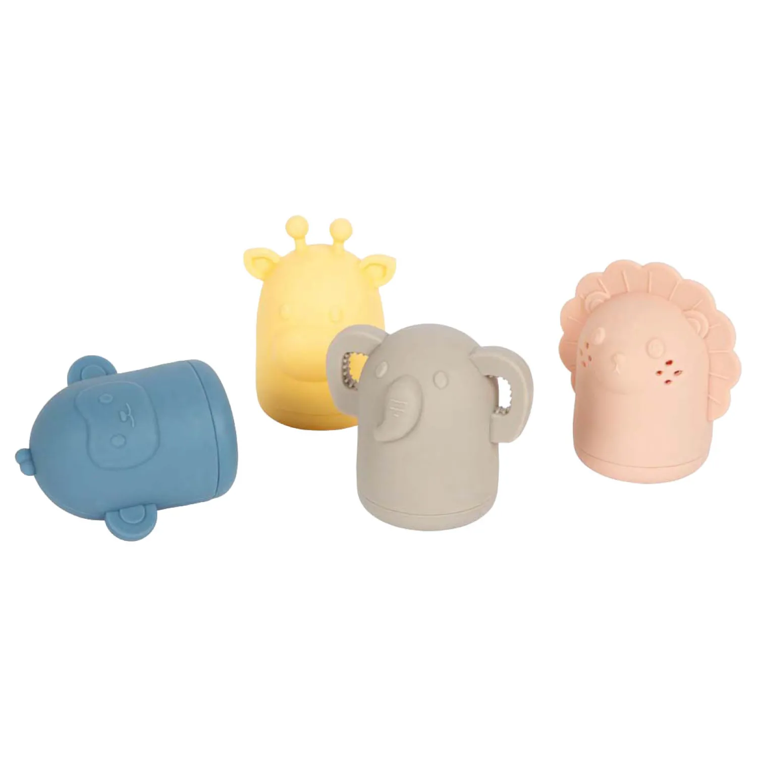 De siliconen badspeelset combineert plezier en veiligheid in een verfijnd ontwerp dat speciaal is ontwikkeld voor de allerkleinsten. Met hun verschillende texturen en openingen zorgen de vier spuitende figuren voor afwisseling tijdens het badplezier: ze spetteren op verschillende manieren water, waardoor de zintuigen worden geprikkeld terwijl kinderen op een leuke manier hun fijne motoriek en hand-oogcoördinatie trainen. Door het slimme tweedelige ontwerp zijn de figuren gemakkelijk te openen om schoon te maken. Zo blijft de binnenkant volledig droog en vrij van schimmel of onaangename geurtjes – een geweldige extra functie. Of het nu in bad, op het strand of aan de waterspeeltafel is: deze robuuste dieren zorgen overal voor vrolijk spetteren en actief spelen. De zachte kleuren en verschillende tactiele details zorgen voor extra zintuiglijke stimulatie en nodigen kinderen uit om te voelen, te grijpen en te ontdekken.