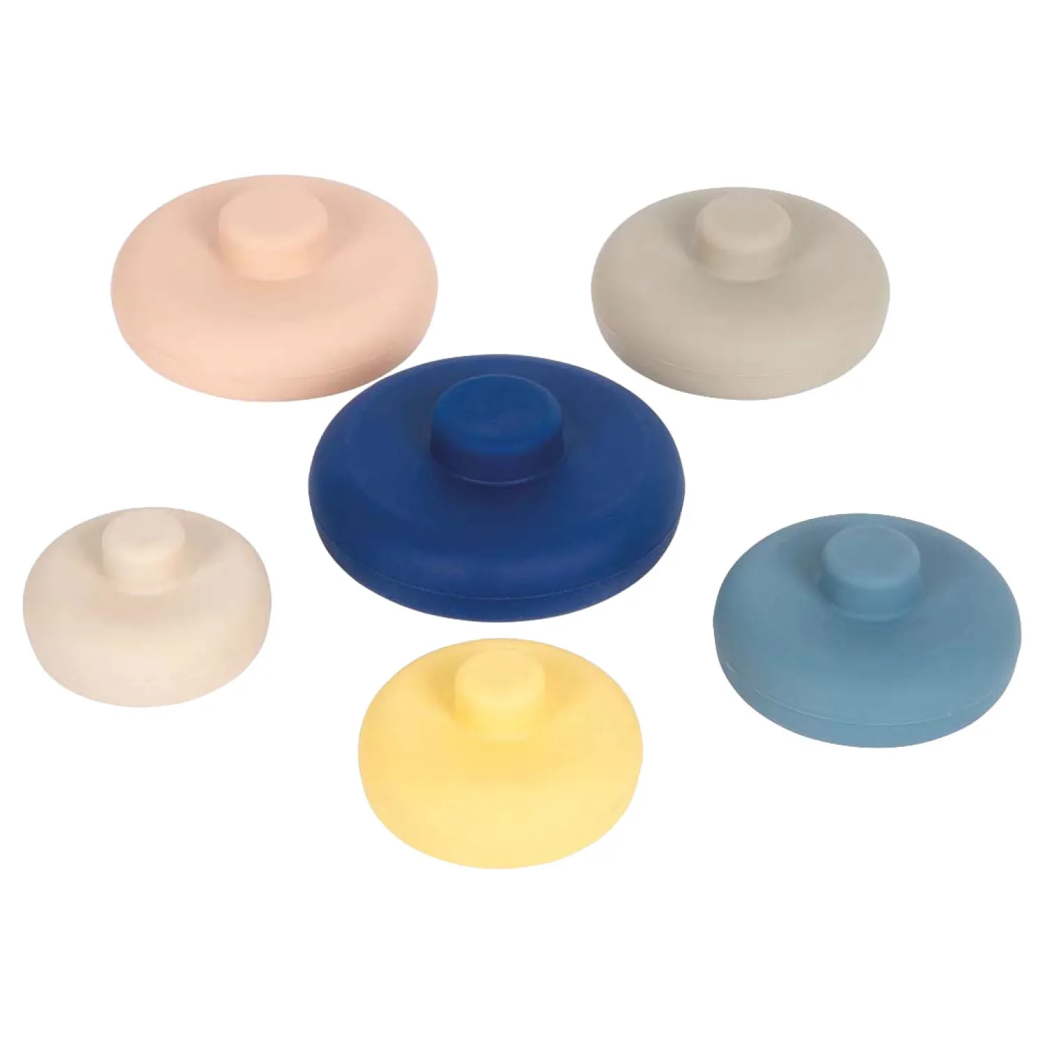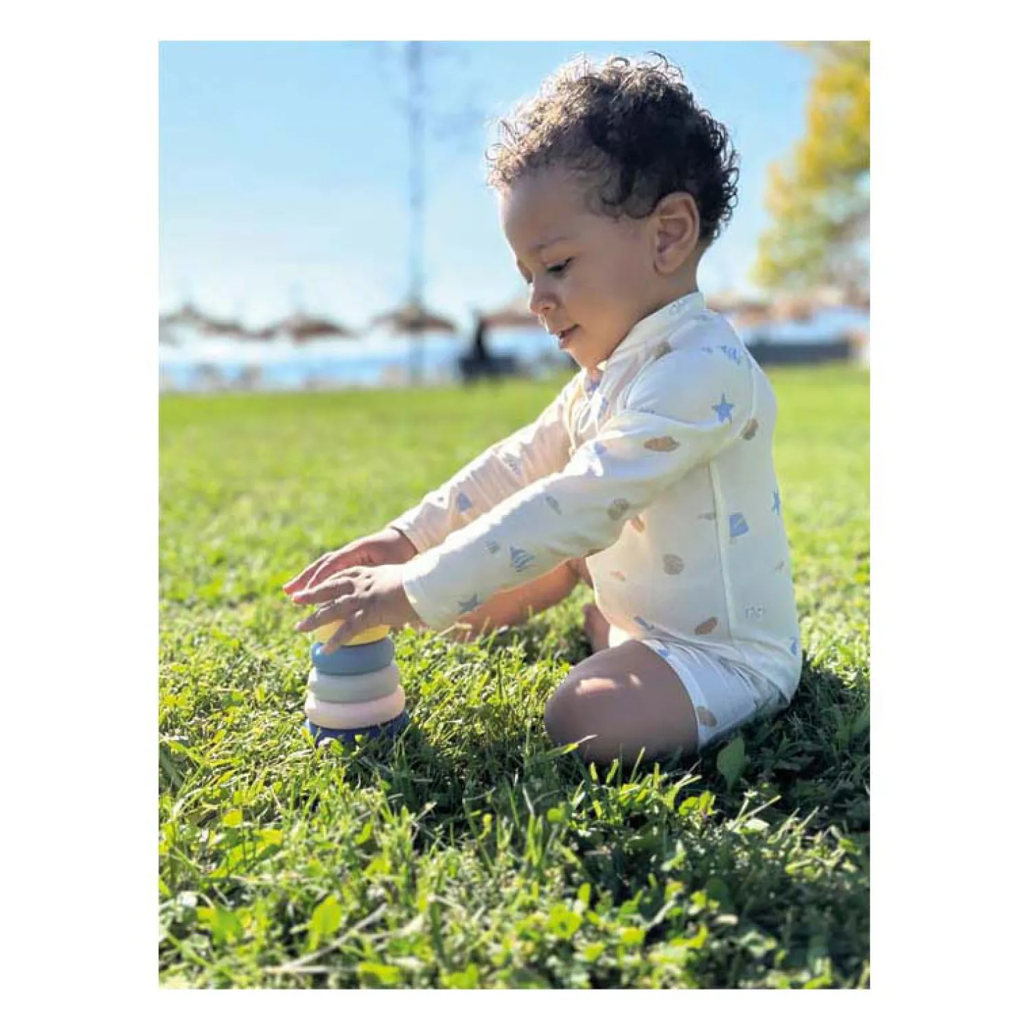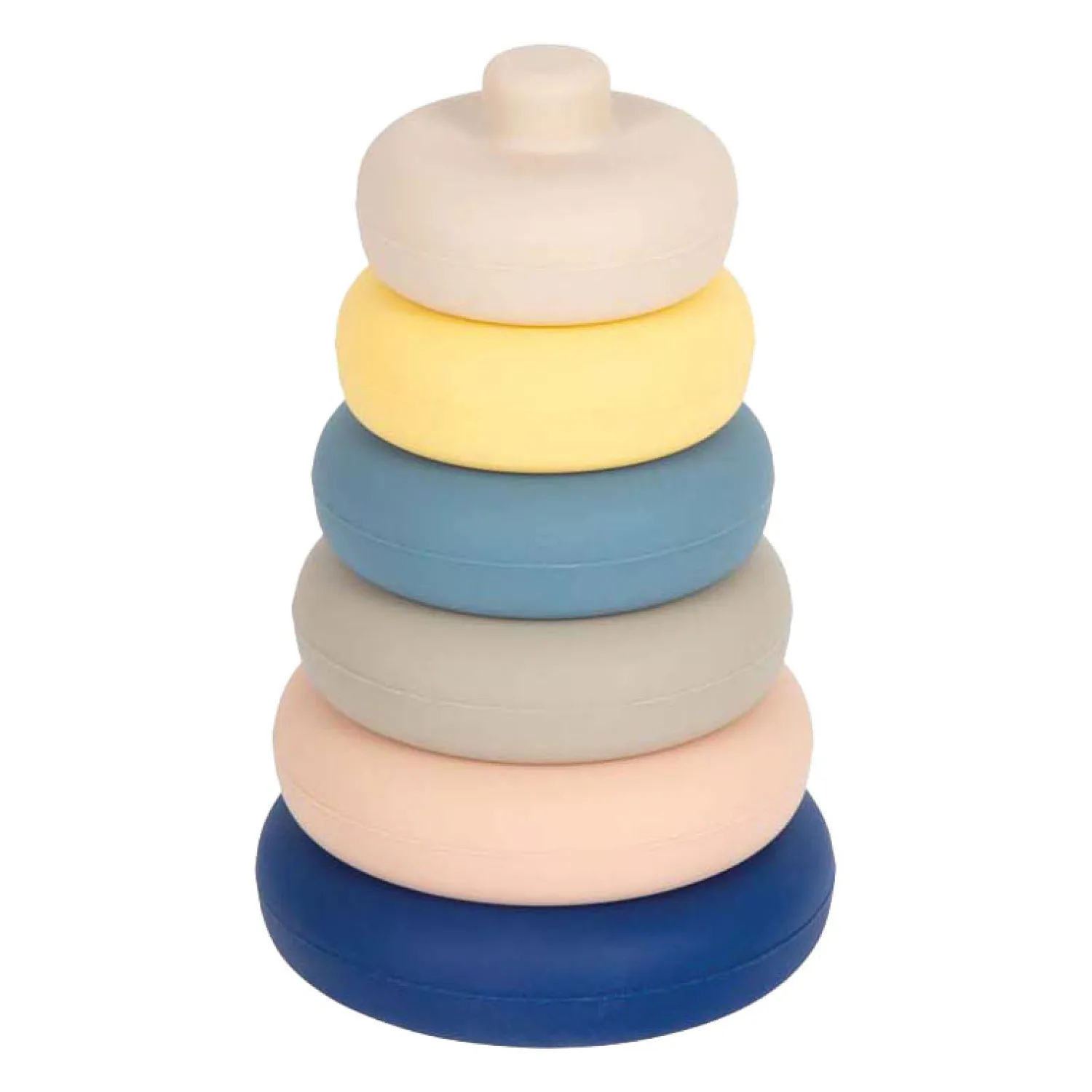 De siliconen stapeltoren is een veelzijdig motorisch speelgoed dat baby’s en peuters helpt bij het zetten van belangrijke ontwikkelingsstappen. De 6 torenelementen van verschillende grootte kunnen veilig op elkaar worden gestapeld zonder middenstang – een pluspunt in veiligheid en een ideale kennismaking met de wereld van het stapelen. Tegelijkertijd worden creativiteit en verbeeldingskracht gestimuleerd wanneer de elementen vrij worden gecombineerd en opnieuw worden gestapeld. Of het nu als toren in de kinderkamer is, als speelgoed in de zandbak of als badspeelgoed in bad: deze siliconen stapeltoren is robuust, flexibel en veelzijdig, waardoor hij perfect is voor dagelijks gebruik door jonge ontdekkingsreizigers.