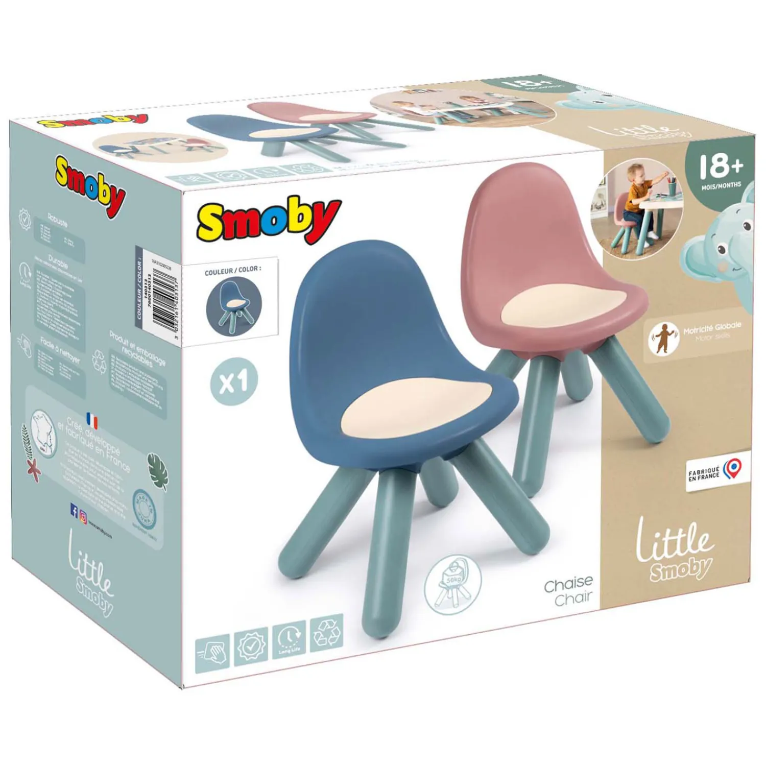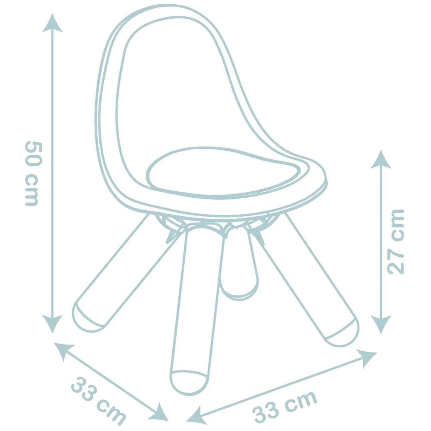 De stoel heeft een afmeting van 33x33x50 cm en kan tot 50 kg gewicht dragen. Geschikt voor kinderen vanaf 18 maanden.