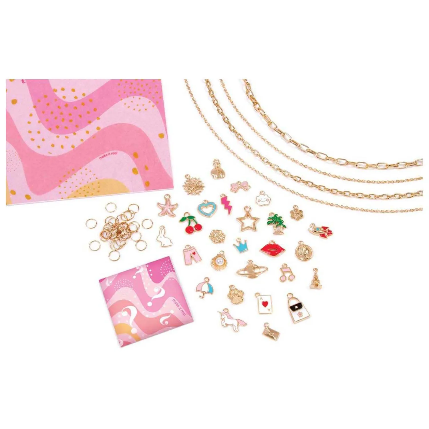 Inhoud: 32 bedels, 32 buigringen, 4 halskettingen, 1 bedelmat, 1 instructieblad