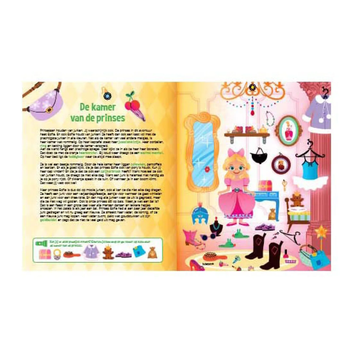 Het boek begint met leuke weetjes en feitjes over prinsessen. Hier kom je ook de kartonnen zaklamp tegen. Deze zaklamp heb je nodig voor de pagina’s die volgen. In het verhaal staan namelijk gekleurde woorden, die je op de rechterpagina kunt zoeken. Maar dat lukt alleen als je de zaklamp gebruikt! Schuif ‘m onder de zwarte pagina en je ziet dat er een lichtbundel ontstaat, waarmee je kunt zien wat Sofie allemaal beleeft. Bekijk je ook de andere titels in deze serie?