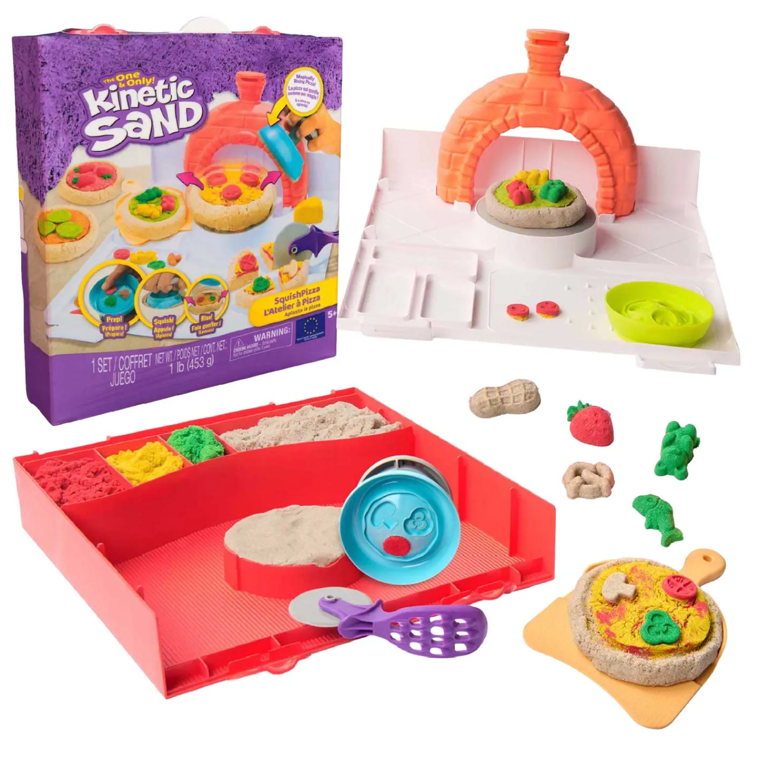 Kinetic Sand helpt bij de ontwikkeling van de fijnmotorische en zintuiglijke vaardigheden, is geschikt voor individueel of groepsspel, en stimuleert sociale interactie. SquishPizza is een must-have cadeau voor verjaardagen, Kerstmis, feestdagen en Pasen. Het is een aantrekkelijk alternatief voor knutselklei en bouwspeelgoed. Het One and Only Kinetic Sand is gemaakt van natuurlijk zand, droogt nooit uit en blijft aan zichzelf plakken zodat het makkelijk op te ruimen is. Voel het zand in je handen met meer kleuren Kinetic Sand en ontdek aanvullende speelsets (elk afzonderlijk verkocht).