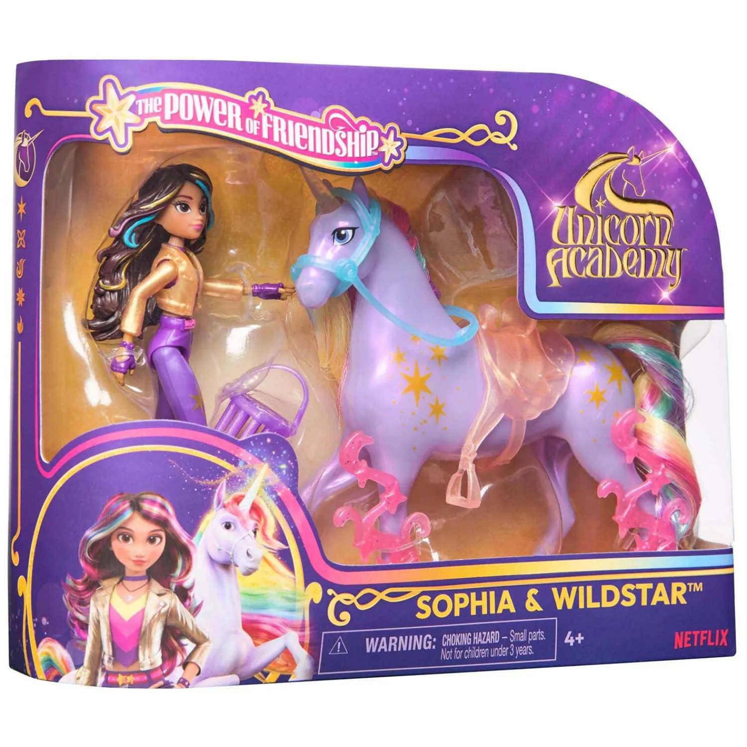 Sophia is volledig beweegbaar met 7 scharnierpunten, waardoor ze echt op Wildstar kan rijden. Druk op de stervormige knop op Wildstar om de lichtmagie te activeren: haar hoorn en stermarkeringen gaan gloeien in regenboogkleuren en kunnen begeleid worden door muziek of geluidseffecten uit de serie!