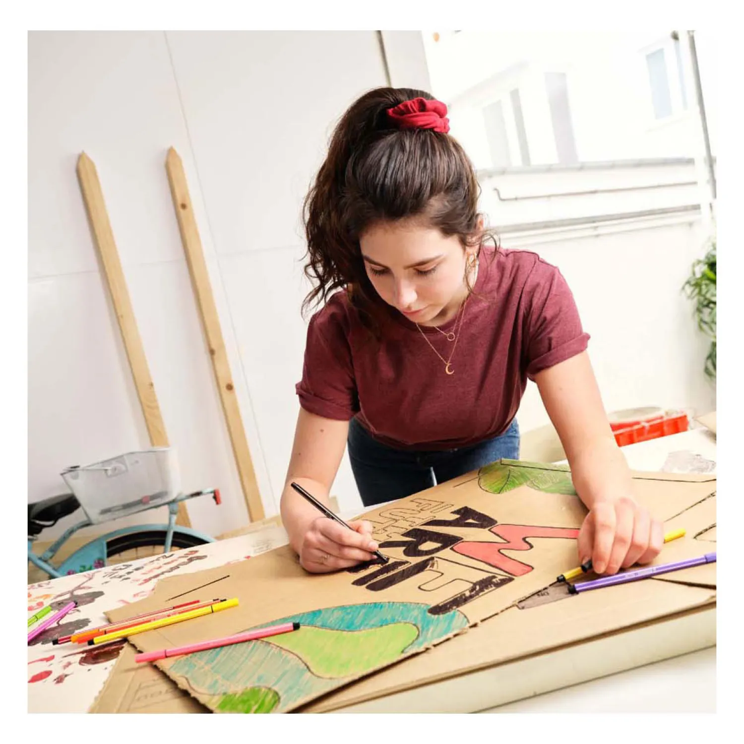 De STABILO Pen 68 viltstiften zijn viltstiften van de allerhoogste kwaliteit en bieden oneindig veel kleurmogelijkheden. De punt is 1 mm dik voor krachtige lijnen en het inkleuren van vlakken. De robuuste punt zorgt voor een gelijkmatige inktafgifte. De viltstift kan 24 uur zonder dop zonder dat de punt uitdroogt. De kleuren zijn intens en zeer goed dekkend.