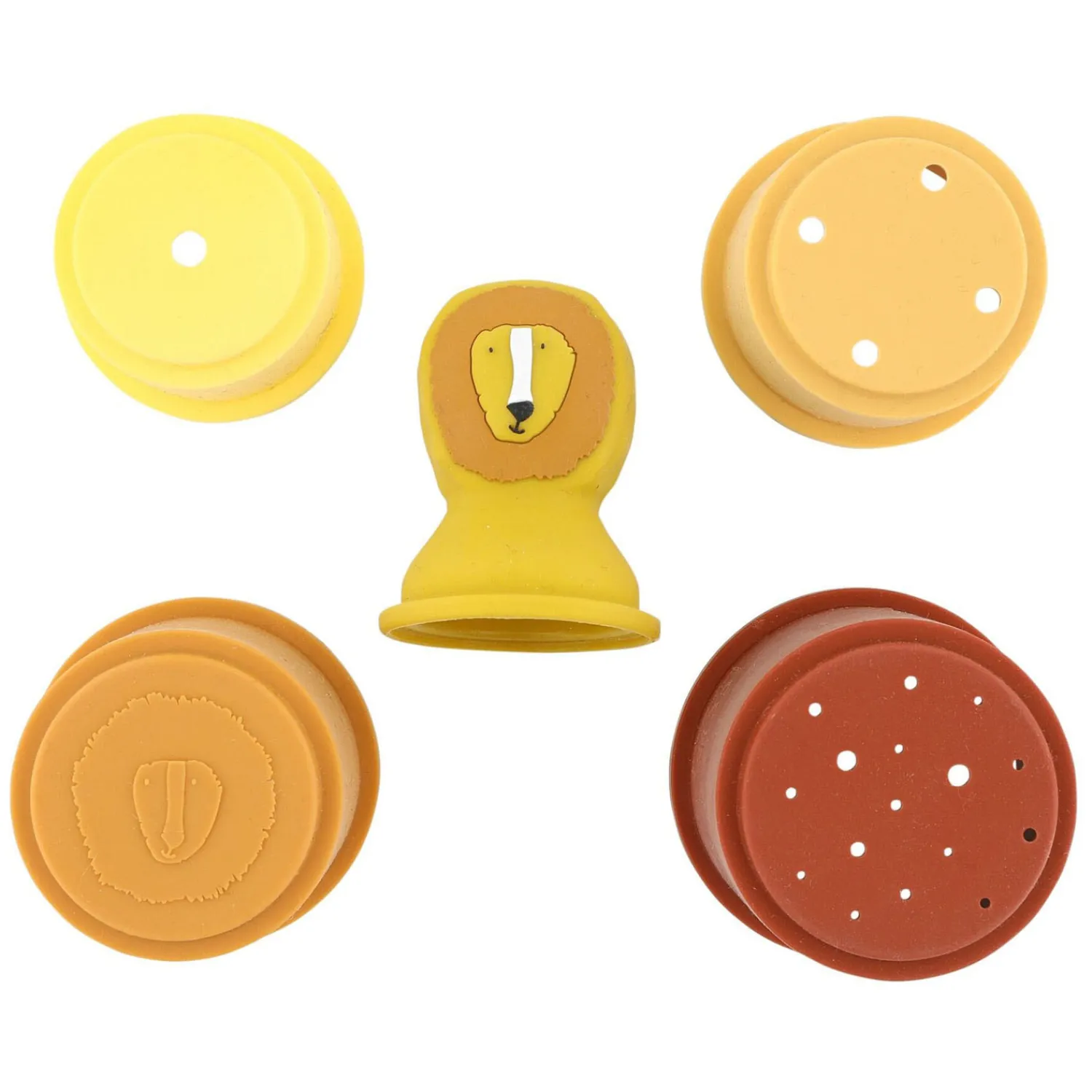 Hoger… Hoger… Oeps! Daar gaan ze. Deze stapelbare bekertjes van zacht siliconen hebben prachtige kleuren en leuke vormen. Sommige hebben gaatjes om ze op een speciale manier te laten drijven, en andere zijn dicht, zodat je ze kunt vullen en leeggieten. Je kunt ze ook als gietbekertjes gebruiken – ideaal om jouw baby’s haartjes te spoelen.