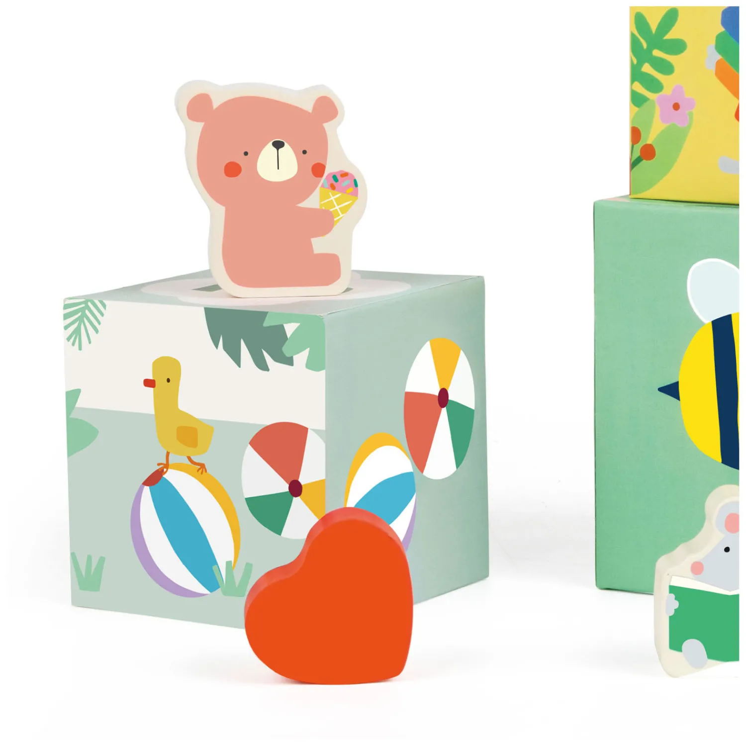 De blokken stimuleren de motorische vaardigheden, hand-oogcoördinatie en het probleemoplossend vermogen. De blokken zijn geschikt voor kinderen vanaf 18 maanden.