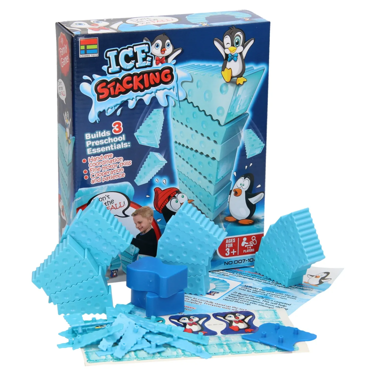 Met het stapelspel oefen je oog-hand coördinatie, fijne motoriek, geduld en samenwerken. Je kunt dit spel met één t/m vier personen spelen. Inhoud: twee pinguïns, twintig stukjes ijs, stickers om de spelstenen mee te beplakken en de instructies voor alle drie de spellen.