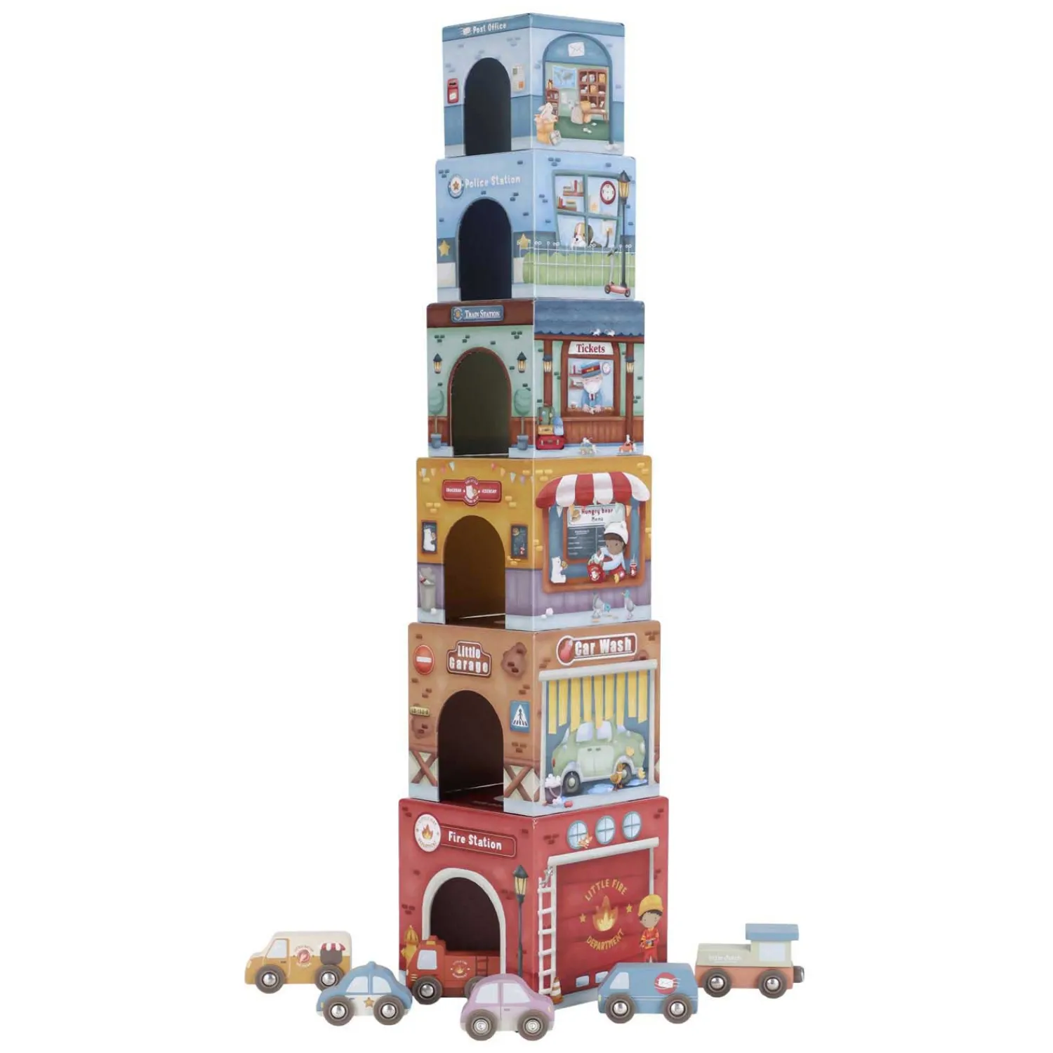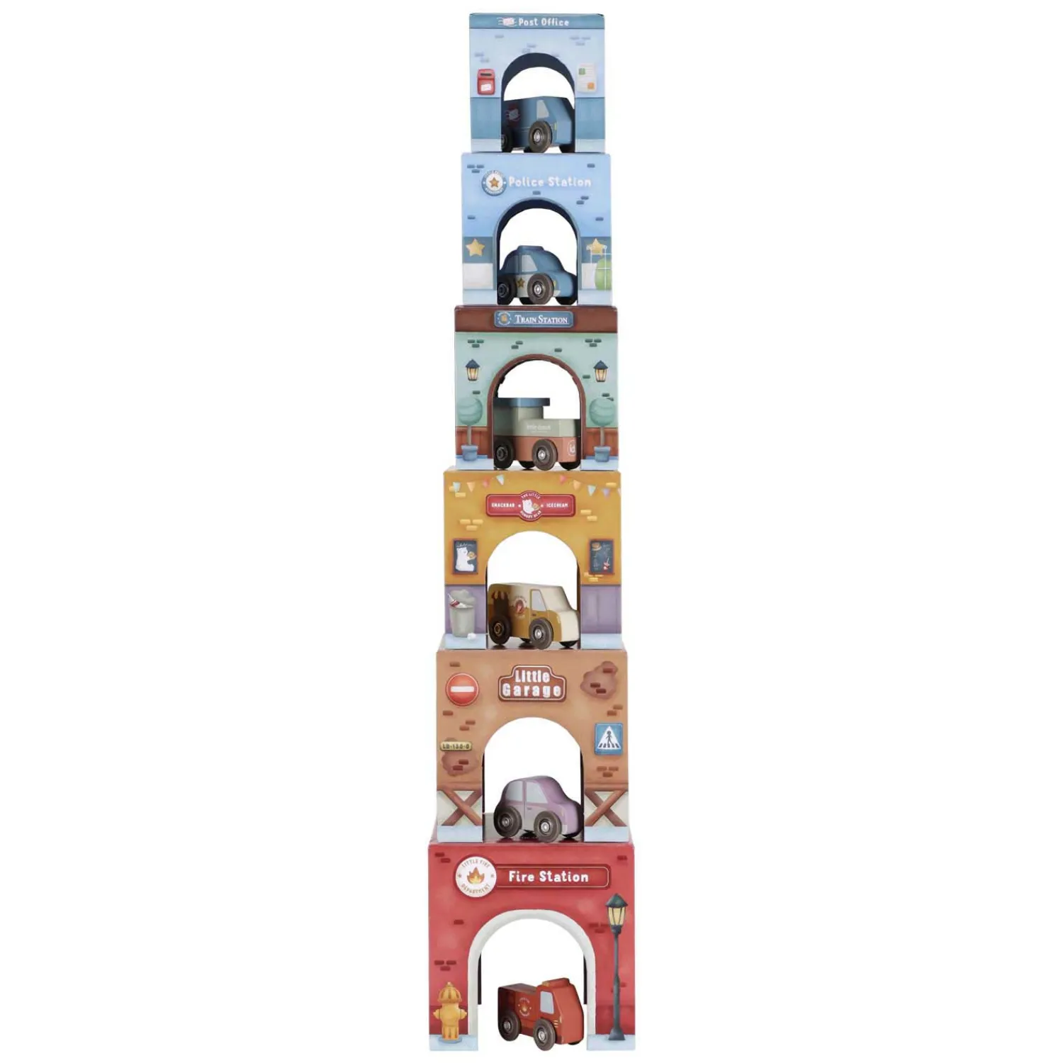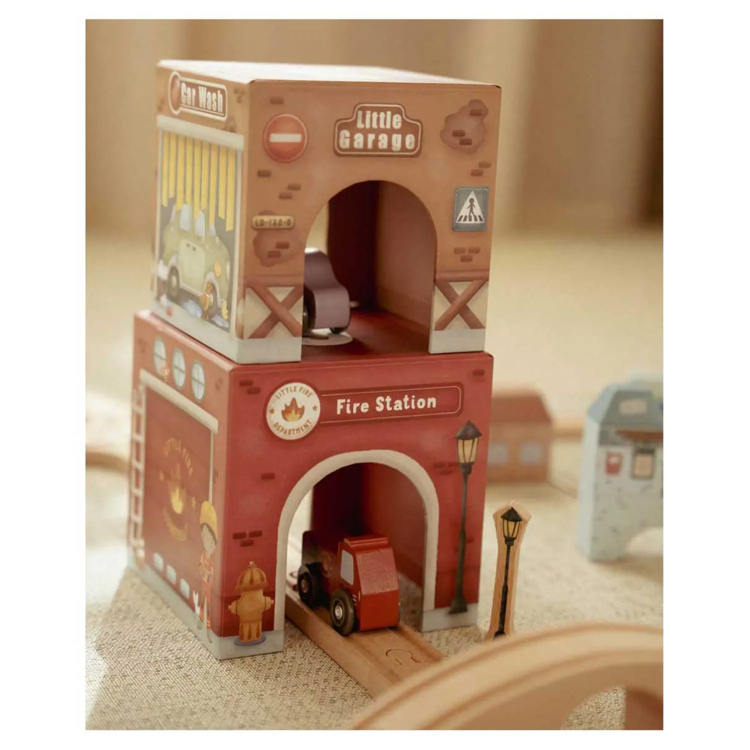 voertuigen biedt eindeloos speelplezier. Stapel de blokken op elkaar of plaats ze over de Little Dutch Railway XL zodat de voertuigen er moeiteloos onder door kunnen rijden! Elk blok heeft unieke