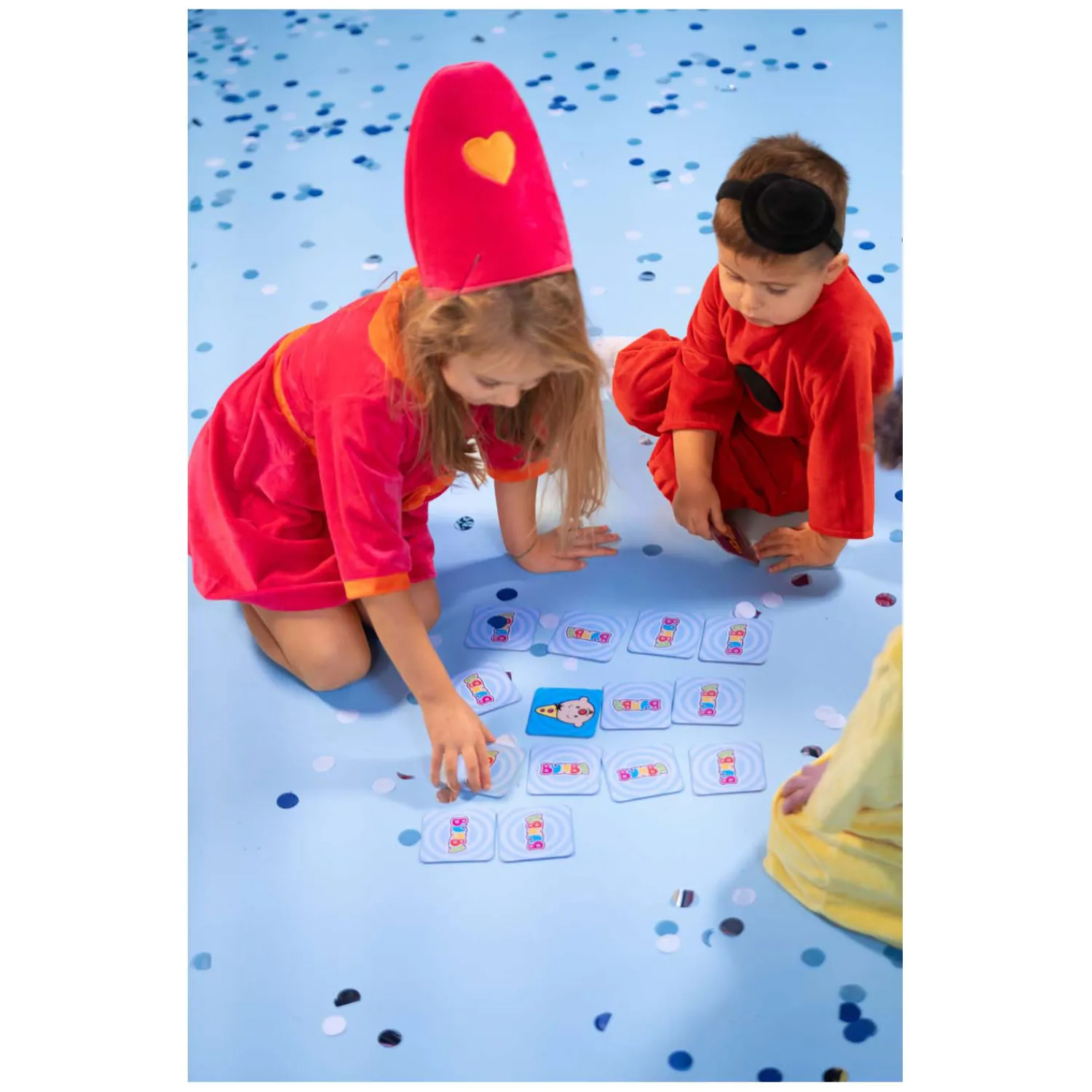 Op de kaartjes staan Bumba en zijn vriendjes die verschillende emoties uitbeelden: blij, boos, bang, verliefd, verbaasd en verdrietig. Als de speler een paartje gevonden heeft van hetzelfde vriendje met de juiste emotie, mag de speler die emotie nadoen. Zo leren peuters en kleuters emoties herkennen en benoemen. Ook bij anderen waardoor het makkelijker wordt om op de juiste manier te reageren. Een bijzonder memory spel voor kleuters en peuters!