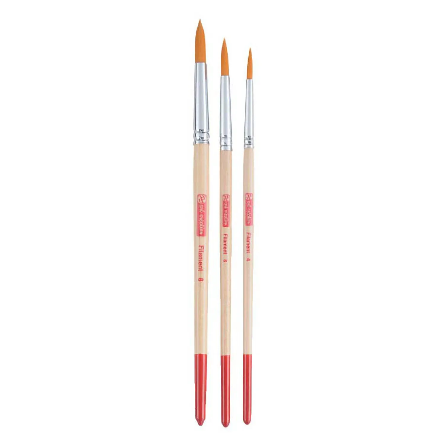 Deze 3 penselen van polyester kunnen veel water opnemen, waardoor ze geschikt zijn voor verdunde verfsoorten, zoals aquarelverf en inkt. De set bevat de volgende soorten en maten: 3 ronde penselen in maat 4, 6 en 8.