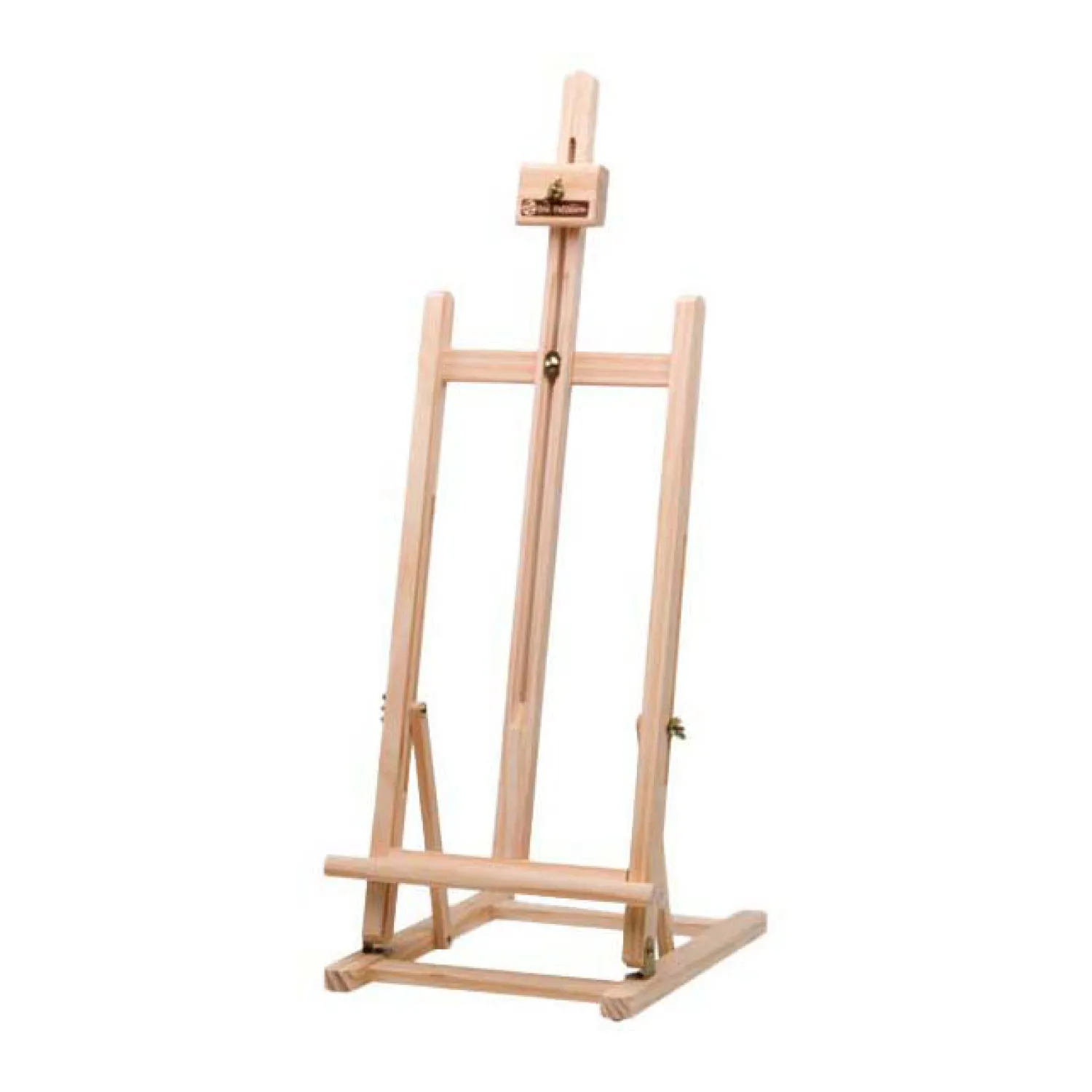 Degelijke vurenhouten tafelezel. Voor optimaal werken is deze ezel voorzien van een in hoogte verstelbare middenstijl met doekdrager en kan de hoek ingesteld worden. Door de inklapbare voet is de ezel makkelijk op te bergen.