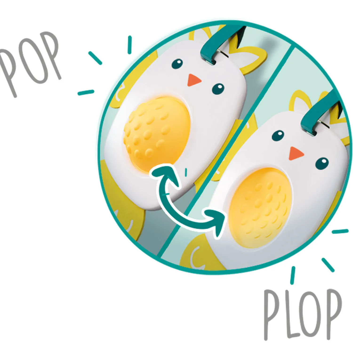 PLOP! Met dit grijpspeelgoed ontwikkelt je peuter de fijne motoriek. Deze vogel heeft een zacht lijf van vilt en een buik waar je mee kan spelen. Druk zijn buik naar binnen en weer naar buiten en word elke keer verrast door een plop geluid. De texturen, materialen en het plop-geluidje maken dit het ideale eerste fidget-speeltje! Met handig lusje om overal aan vast te maken.