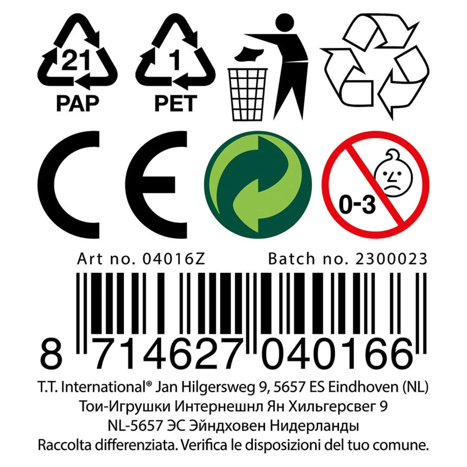 - Waarschuwing: Niet geschikt voor kinderen onder de 3 jaar ivm kleine onderdelen.