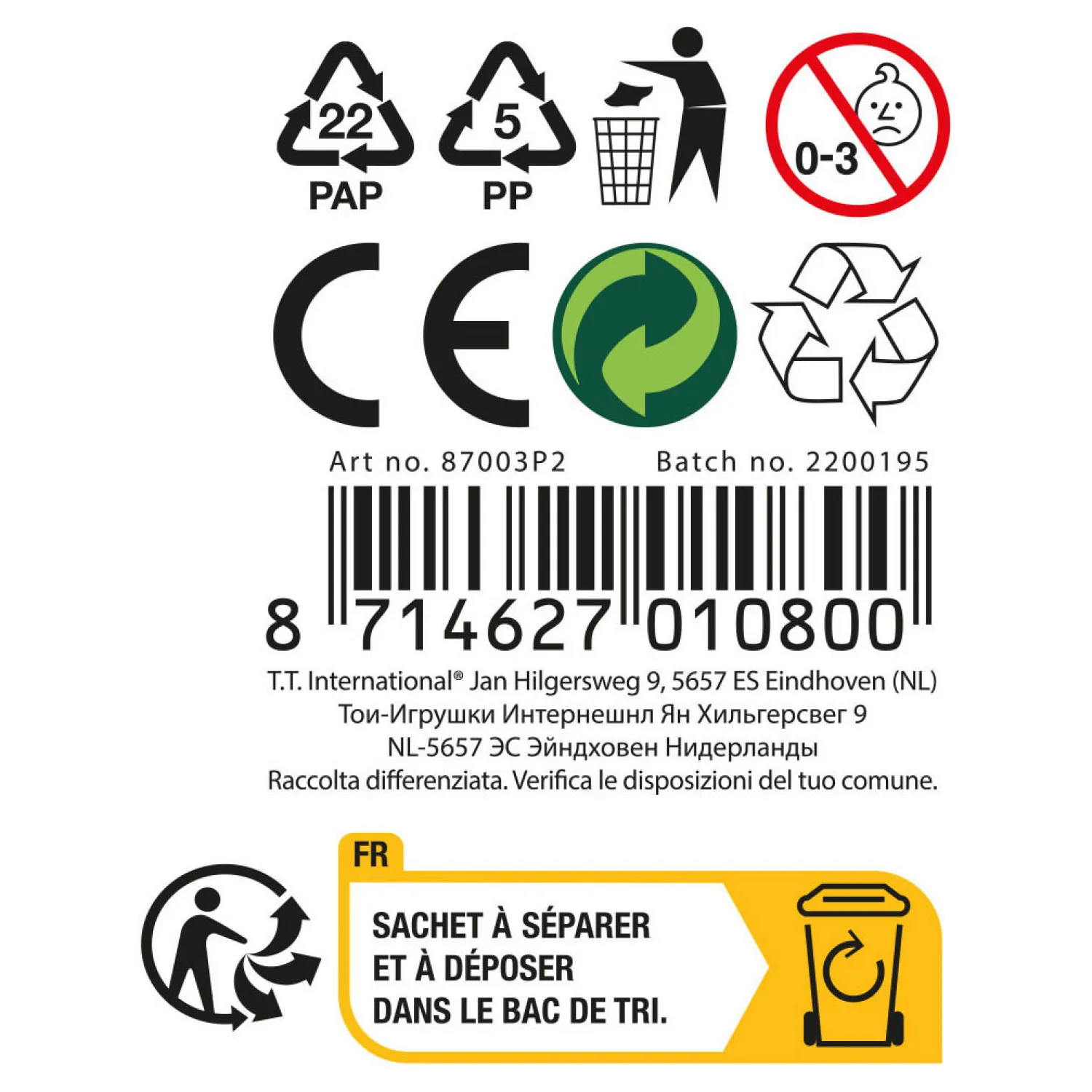 - Waarschuwing: Niet geschikt voor kinderen onder de 3 jaar ivm kleine onderdelen.