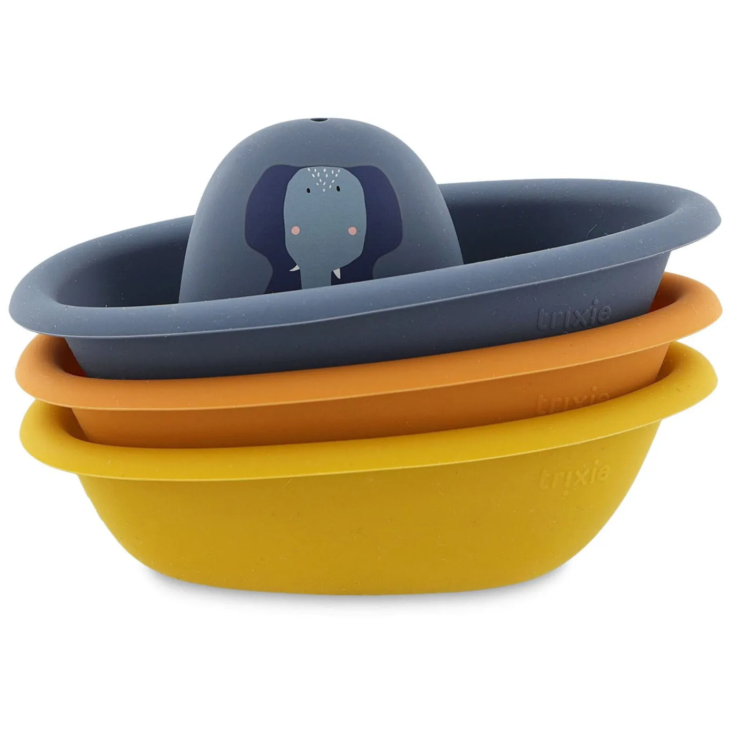Het leukste badspeelgoed in huis van Trixie. Wat dacht je van deze deze stapelbare speelboten? Laat ze drijven met jou in het water, stapel ze tot ze omvallen of gebruik ze als gietbekertjes. Geschikt vanaf 6 maanden.