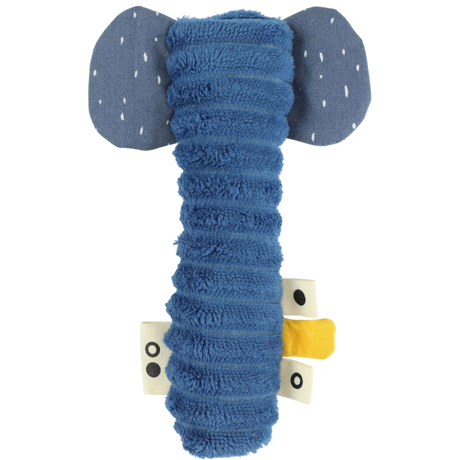 Zelfs de kleinste handjes kunnen dit kleine, zachte vriendje beetnemen. En wanneer je erin knijpt, komt er een kort, luid piepje uit.