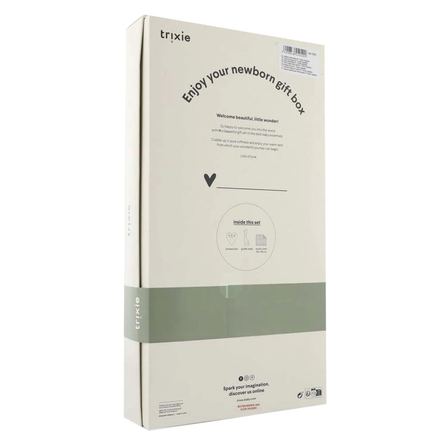 Deze prachtige newborn giftbox van Trixie is het perfecte cadeau voor ieder kleintje. De giftset bevat een handig en stoer bandana-slabbetje, een leuke rammelaar in de vorm van een giraffe bezaaid met groentesoorten en een zacht, katoenen dekentje om baby’s warm te houden. Het is de perfecte set om een pasgeboren baby in deze wereld te verwelkomen!