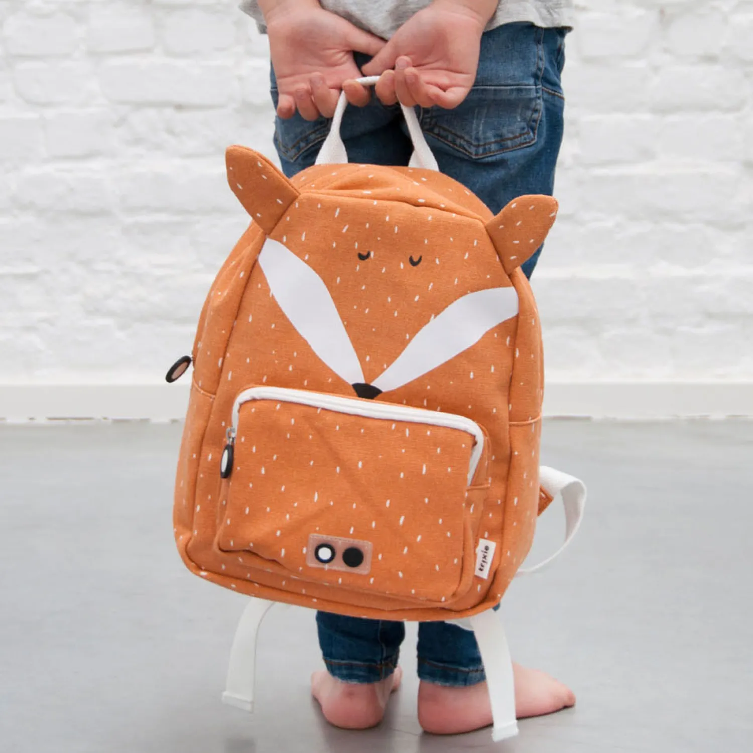 Met dit schattige rugzakje is je kindje helemaal klaar voor elke leuke activiteit of eerste schooldag! De rugzak heeft verstelbare en gewatteerde schouderriemen en aan de bovenkant een handvat om gemakkelijk te kunnen ophangen. De gesp op de borst zorgt ervoor dat de schouderriemen niet van de schouders glijden. Er is ook een klein zakje aan de voorkant voorzien en de ritsen van het grote compartiment en het voorste zakje zijn voorzien van een groter trekkertje zodat de kindjes ze zelf eenvoudig kunnen openen en sluiten. Om te vermijden dat je kindje z’n rugzakje kwijtspeelt, hebben we langs de binnenkant een naam label voorzien.