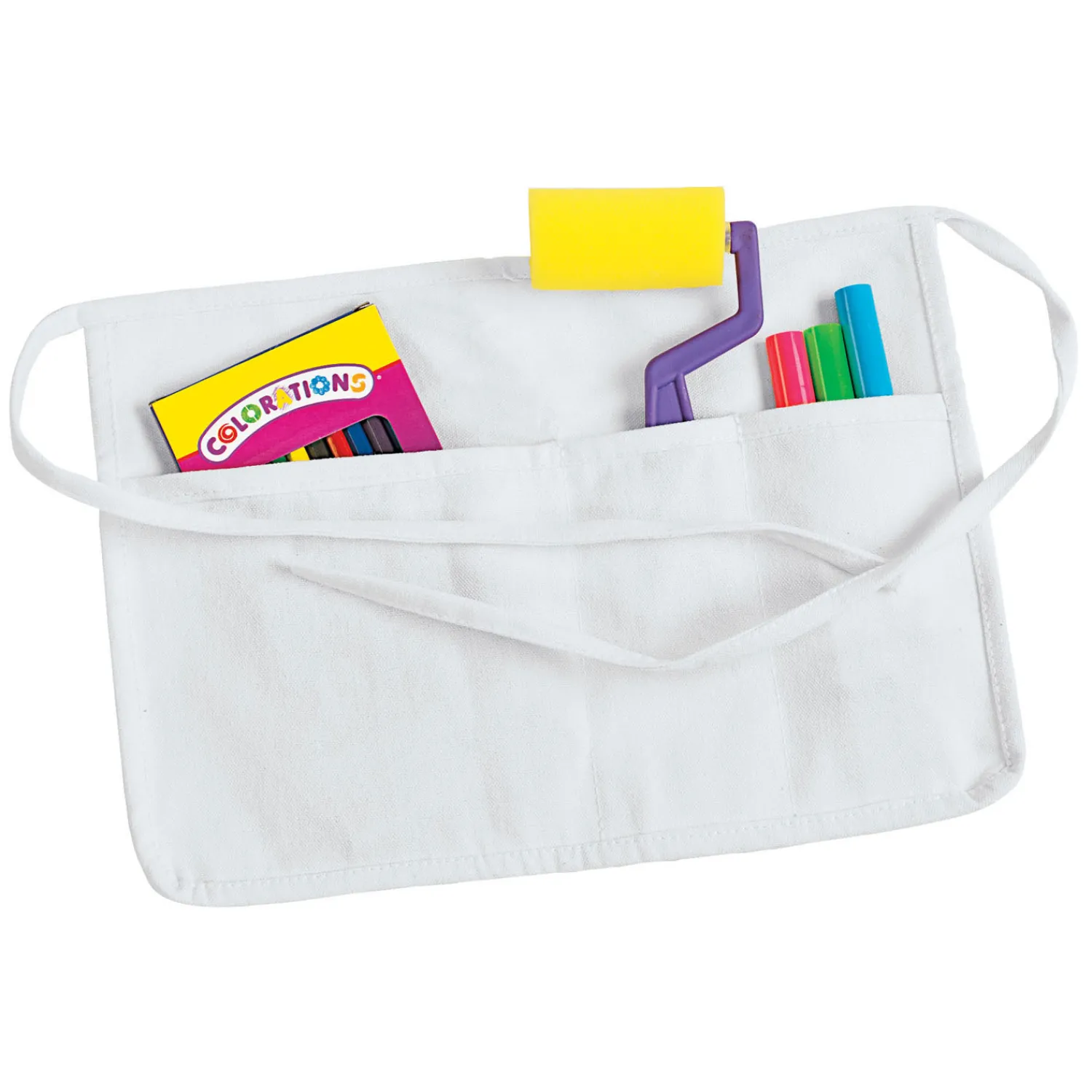 In de set zitten 12 witte schorten, gemaakt van katoen.