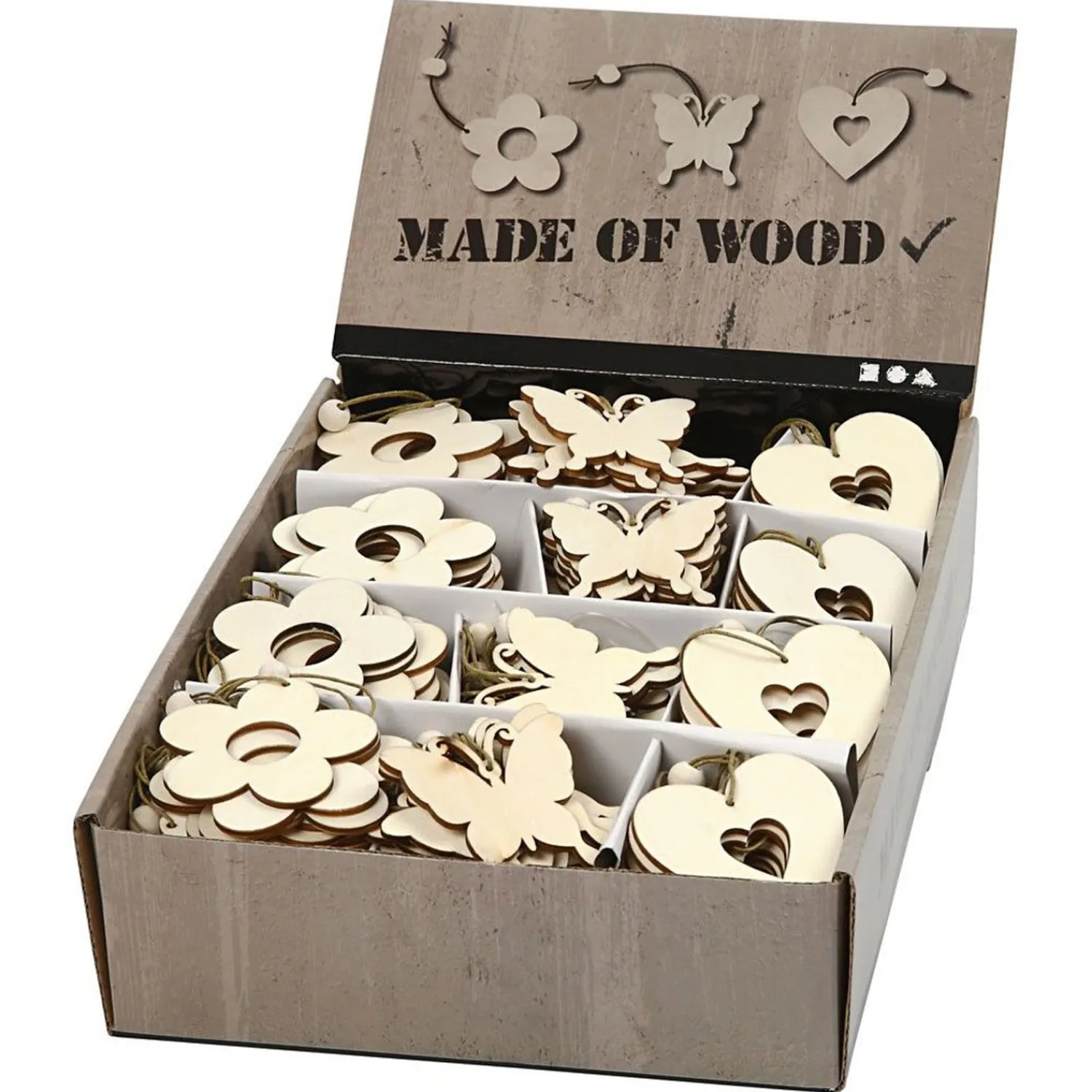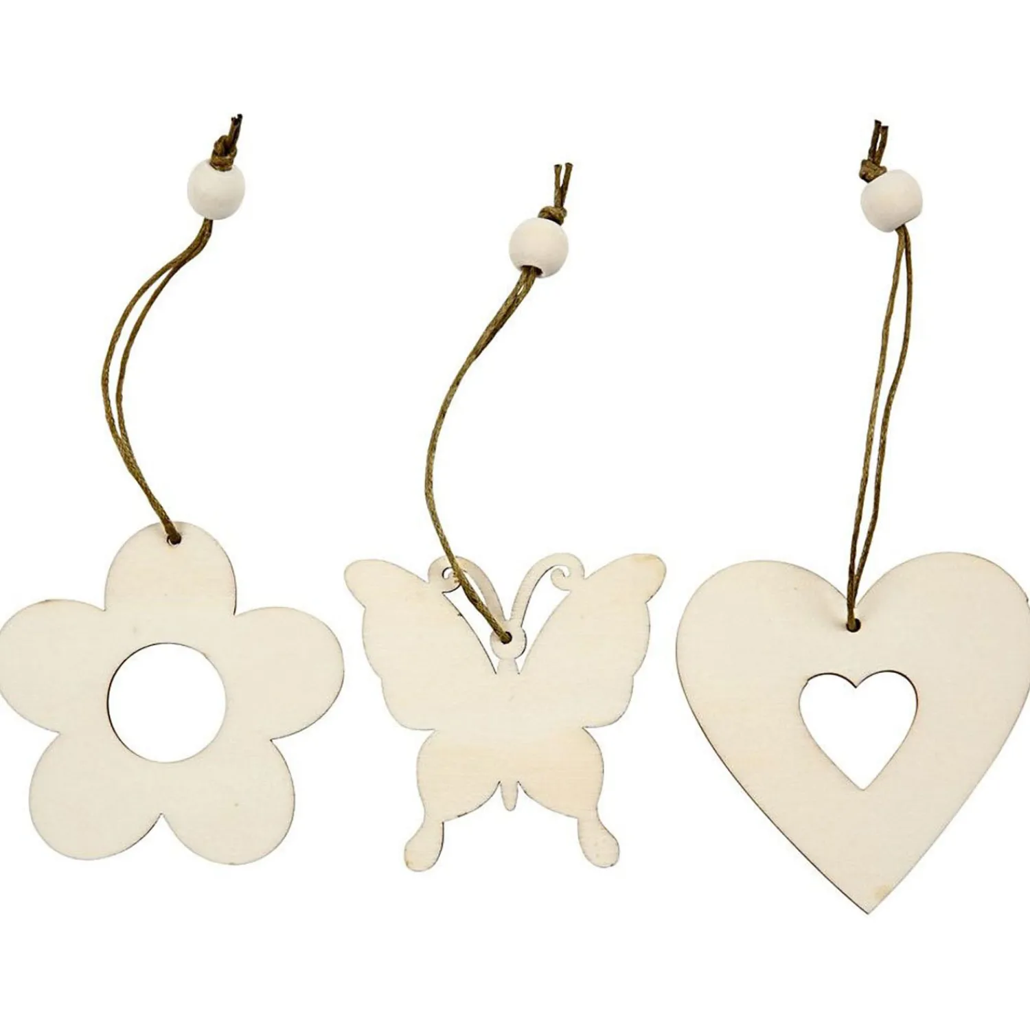 Pak bevat 3 verschillende designs, hart, vlinder en bloem. De hangers hebben een afmeting van 6 cm en zijn 3 mm dik.