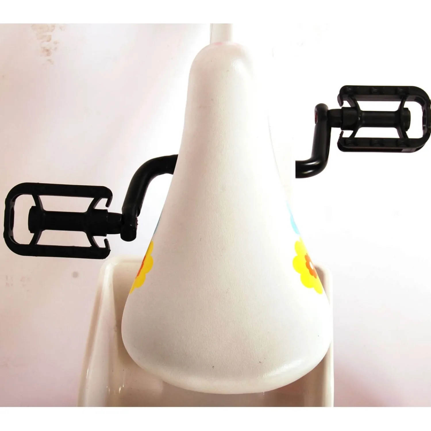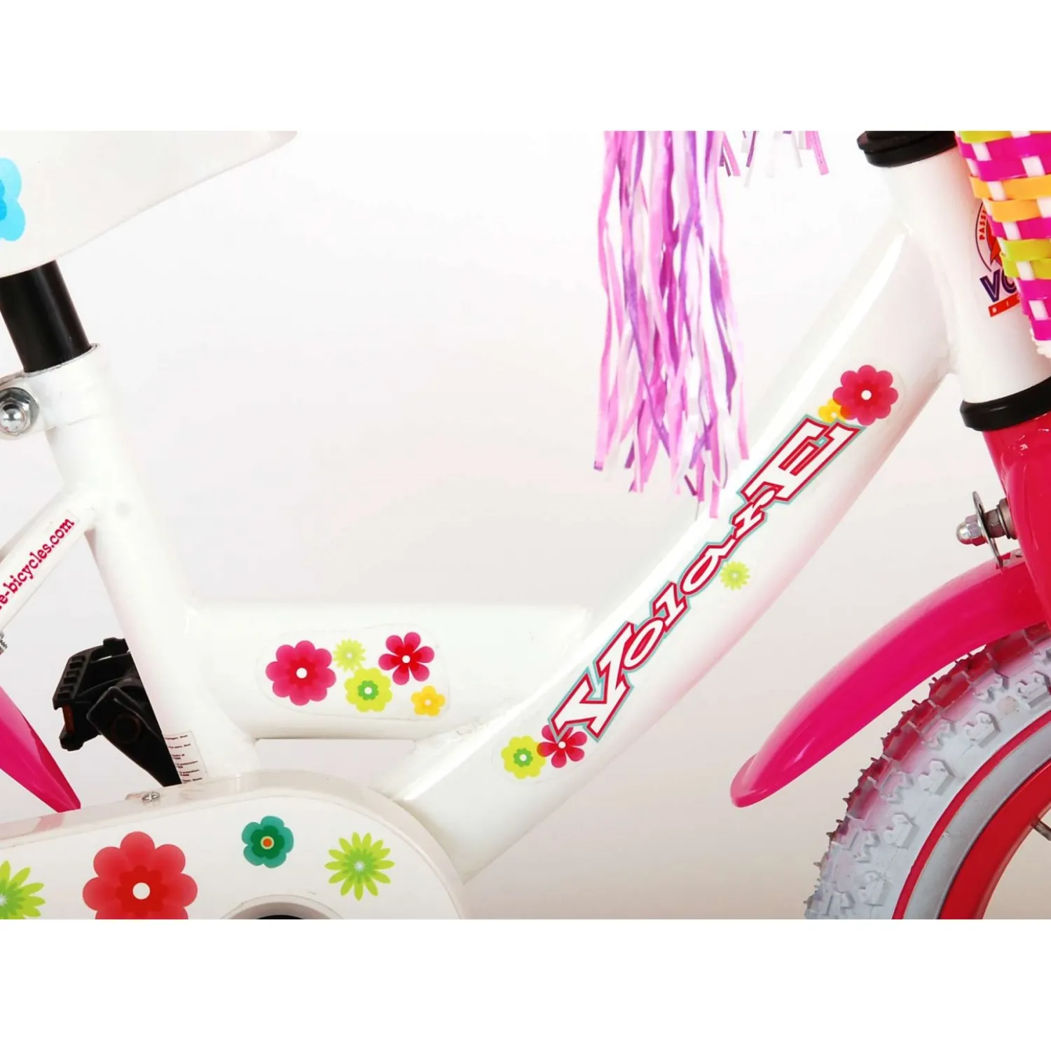 Volare Ashley meisjesfiets 14 inch. De Volare Ashley fietsen zijn geschikt voor alle fleurige dametjes. Zowel het frame van de fiets als het praktische kunststofmandje zijn voorzien van een prachtig bloemetjesdesign. De fiets beschikt over makkelijk afneembare zijwieltjes om snel te kunnen leren fietsen, een stevige handrem en een achteruittraprem. Bovendien heeft de fiets een poppenzitje, zodat ieder dametje haar pop veilig kan vervoeren en zelf haar handjes aan het stuur kan houden. Een top fiets voor een lage prijs! Deze fiets is voor 95% afgemonteerd, dus bijna fietsklaar. Wel zo gemakkelijk!