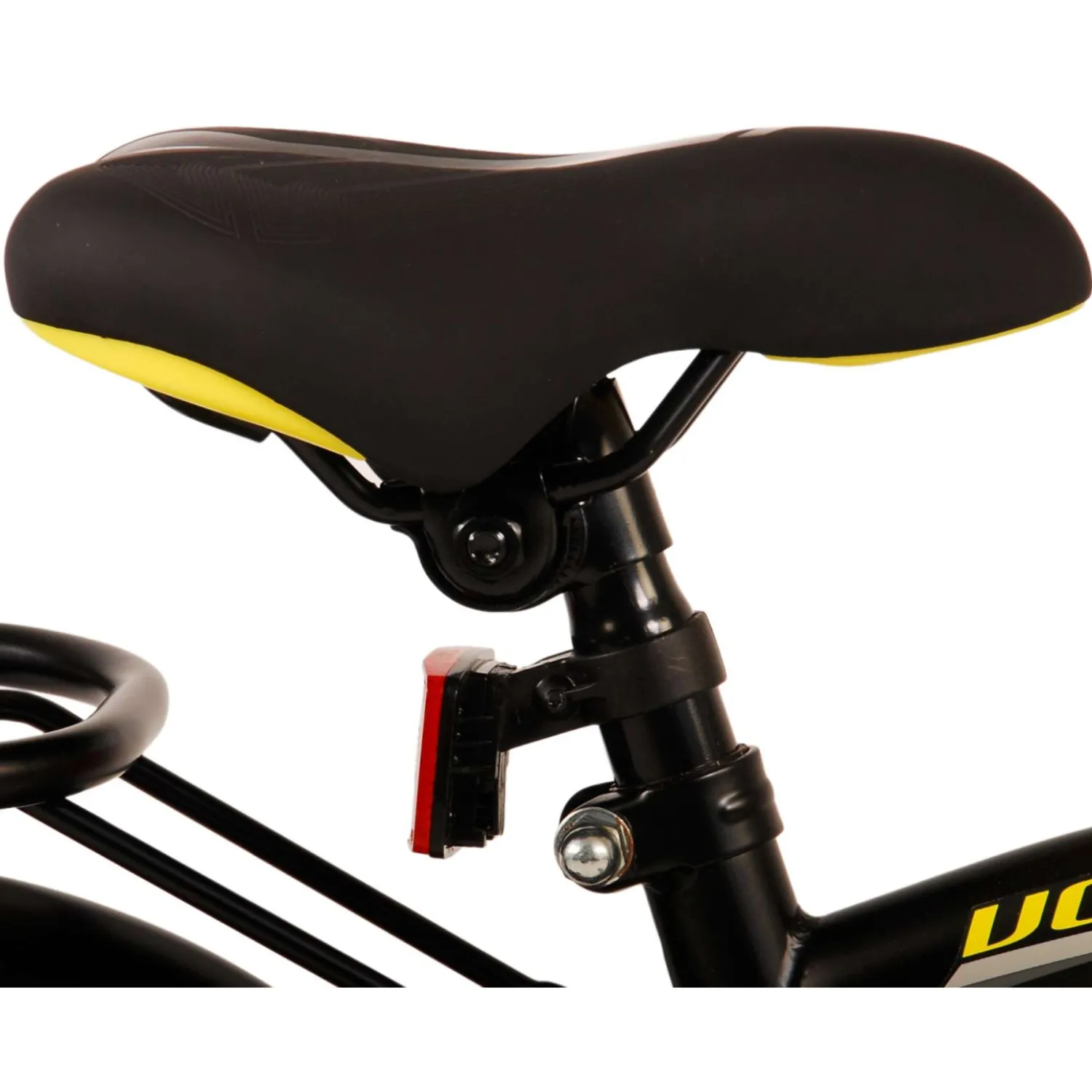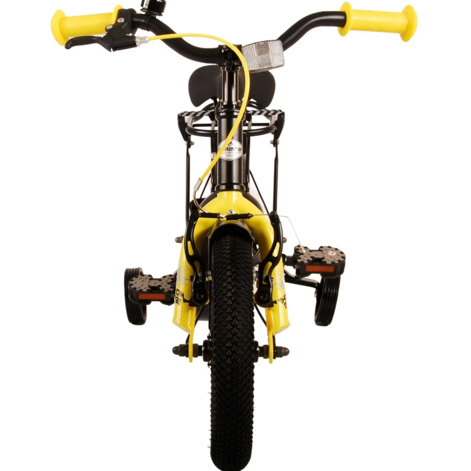 Veiligheid staat voorop! Daarom heeft deze gave fiets een handrem en terugtraprem, een gesloten kettingkast en afneembare zijwieltjes. Daarnaast heeft de fiets een leuke bel. Ook aan het comfort is gedacht. De mooie zwarte Volare fiets met gele accenten heeft een luxe zacht zadel, een handige achterdrager, en extra lange spatborden om al het vuil tegen te houden. Om zo lang mogelijk van de fiets te kunnen genieten zijn het zadel en stuur in hoogte verstelbaar. Wordt geleverd inclusief al het montagemateriaal dat nodig is om de fiets in elkaar te zetten!