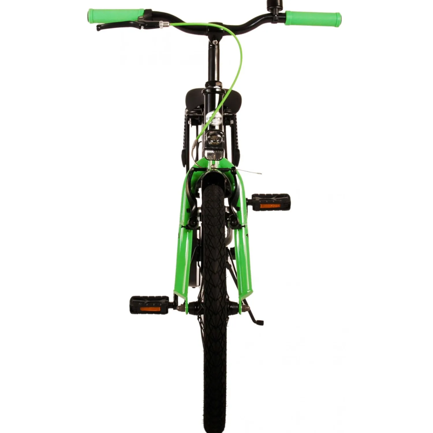 Veiligheid staat voorop! Daarom heeft deze gave fiets een handrem en terugtraprem en verlichting op batterij voor en achter. Daarnaast heeft de fiets een leuke bel en reflectoren in de wielen. Ook aan het comfort is gedacht. De mooie zwarte Volare fiets met groene accenten heeft een luxe zacht zadel en extra zachte handvaten, een handige achterdrager, en een stevig frame dat wel tegen een stootje kan. Verder heeft de fiets een standaard zodat hij netjes blijft staan en een sterk slot. Om zo lang mogelijk van de fiets te kunnen genieten heeft deze een extra lange zadelpen waardoor de fiets nóg langer met het kind meegroeit en ook het stuur is in hoogte verstelbaar.