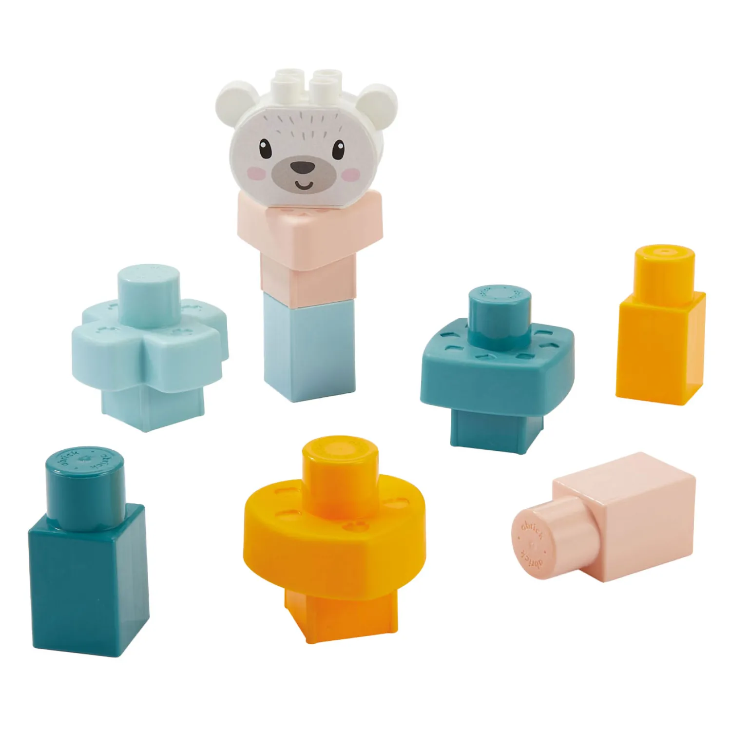 Slim en praktisch: dit huisje bevat 4 vormen, 4 stenen en 1 berenkop. Het huisje dient tegelijk als compacte opbergplek.
