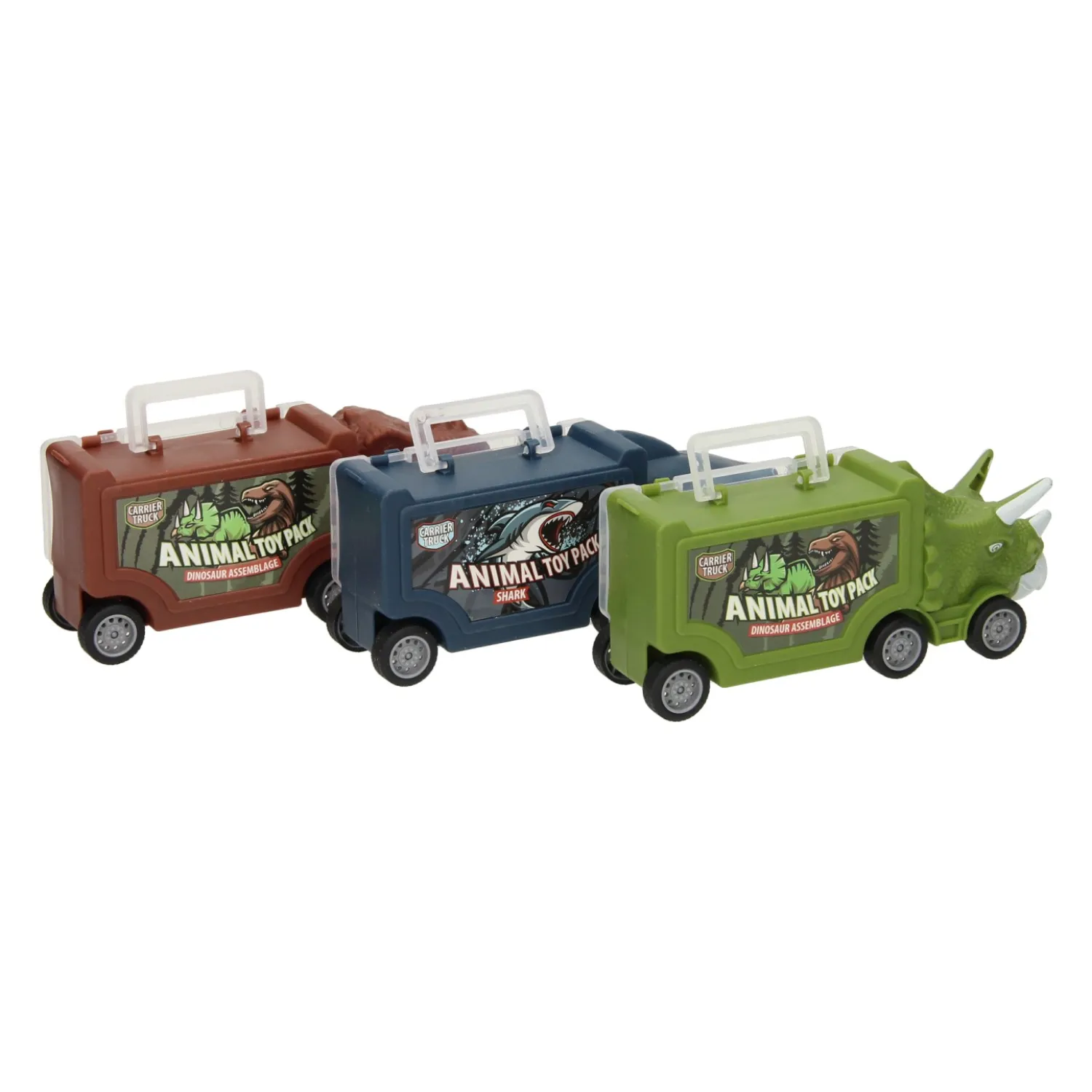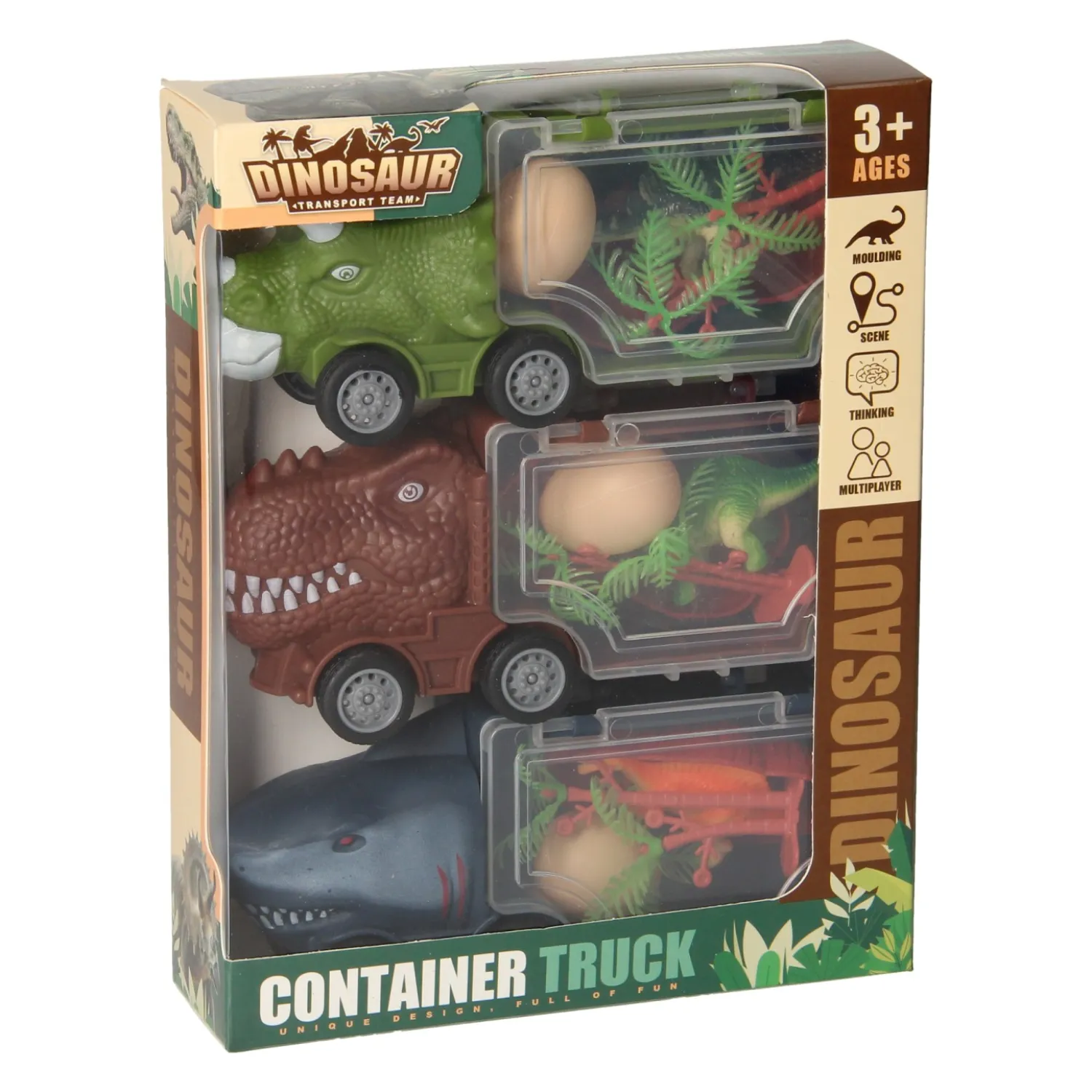 De set bevat 3 verschillende trucks en allerlei leuke accessoires, zoals bomen, kleine dinosaurussen en dinosauruseieren. Geschikt voor kinderen vanaf 3 jaar!