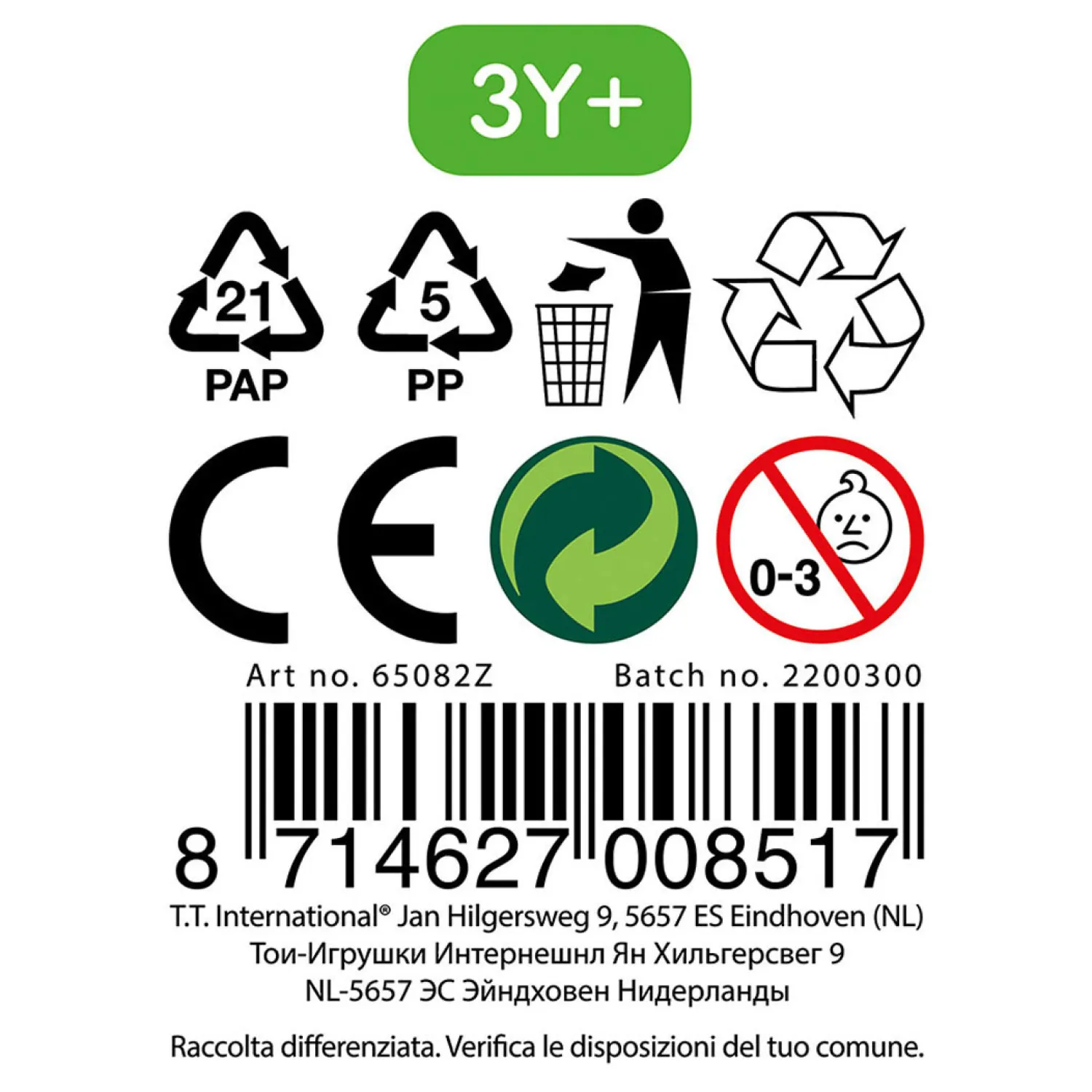 - Waarschuwing: Niet geschikt voor kinderen onder de 3 jaar ivm kleine onderdelen.