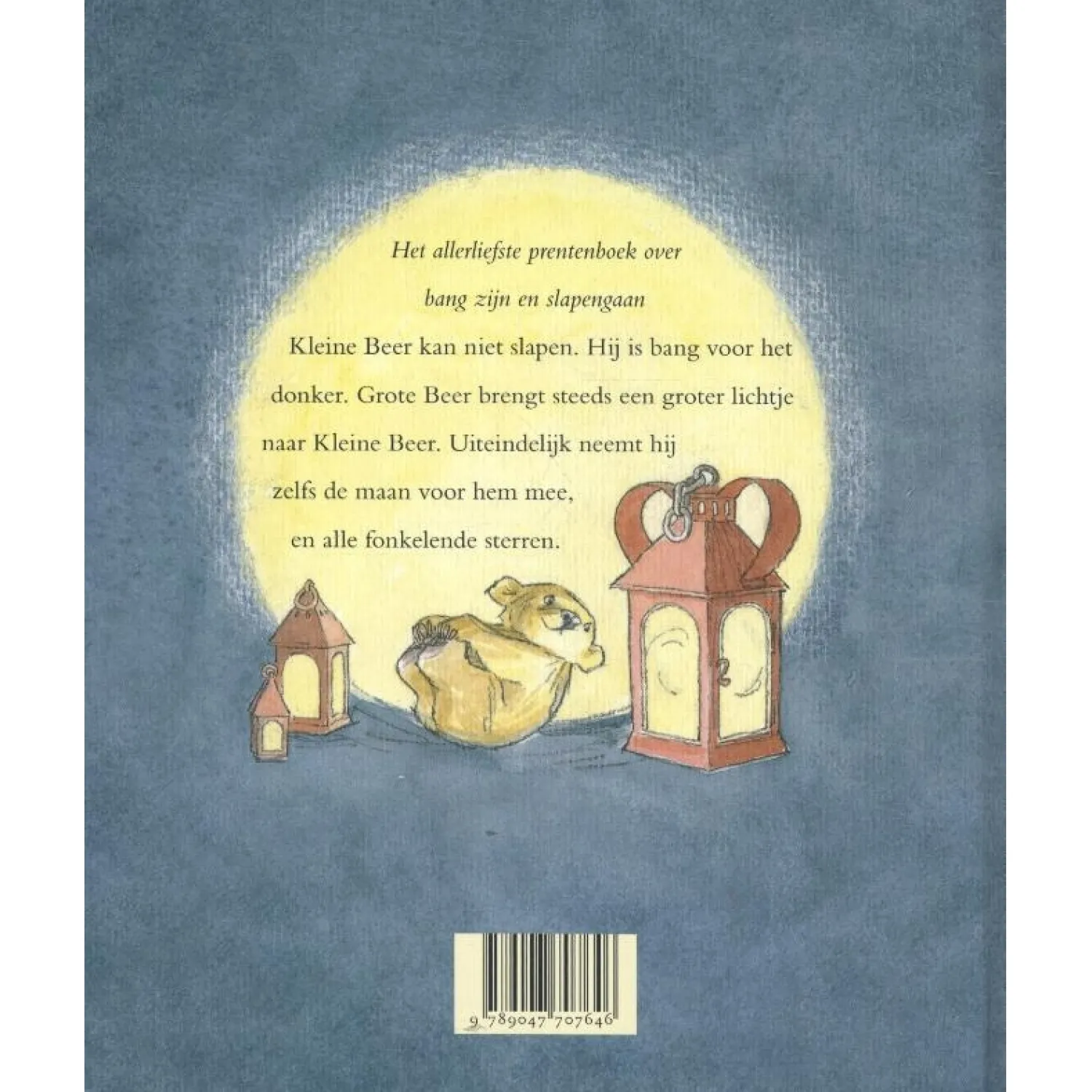 Kleine Beer kan niet slapen. Hij is bang voor het donker. Grote Beer brengt steeds een groter lichtje naar Kleine Beer. Uiteindelijk neemt hij zelfs de maan voor hem mee, en alle fonkelende sterren.