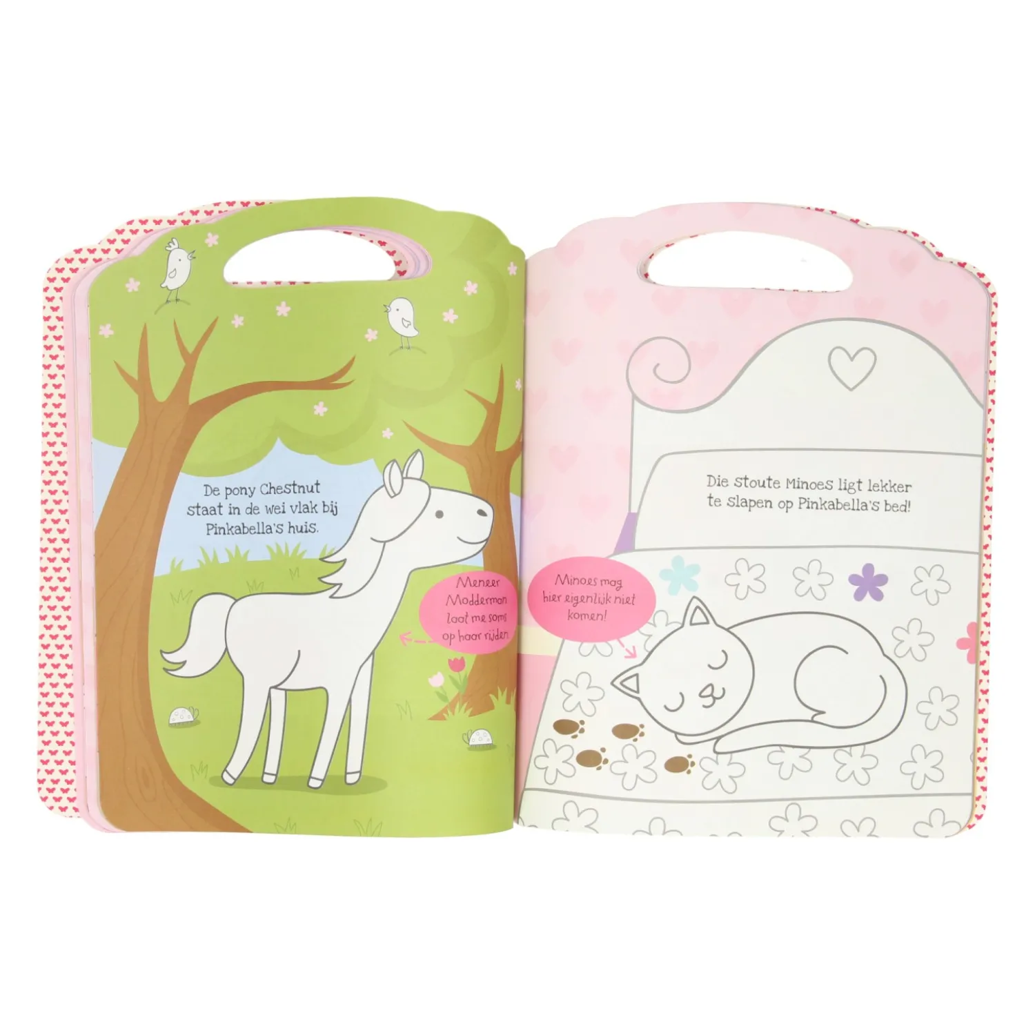’’Mijn naam is Pinkabella. Je mag één keer raden wat mijn lievelingskleur is. ROZE natuurlijk! Dit boek is zo roze als een boek maar kan zijn. De prachtige kleurplaten kun je inkleuren met het vlindervormige wascokrijtje. Je zult rozeachtig veel plezier hebben van dit boek!’’